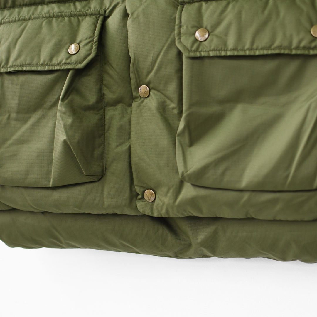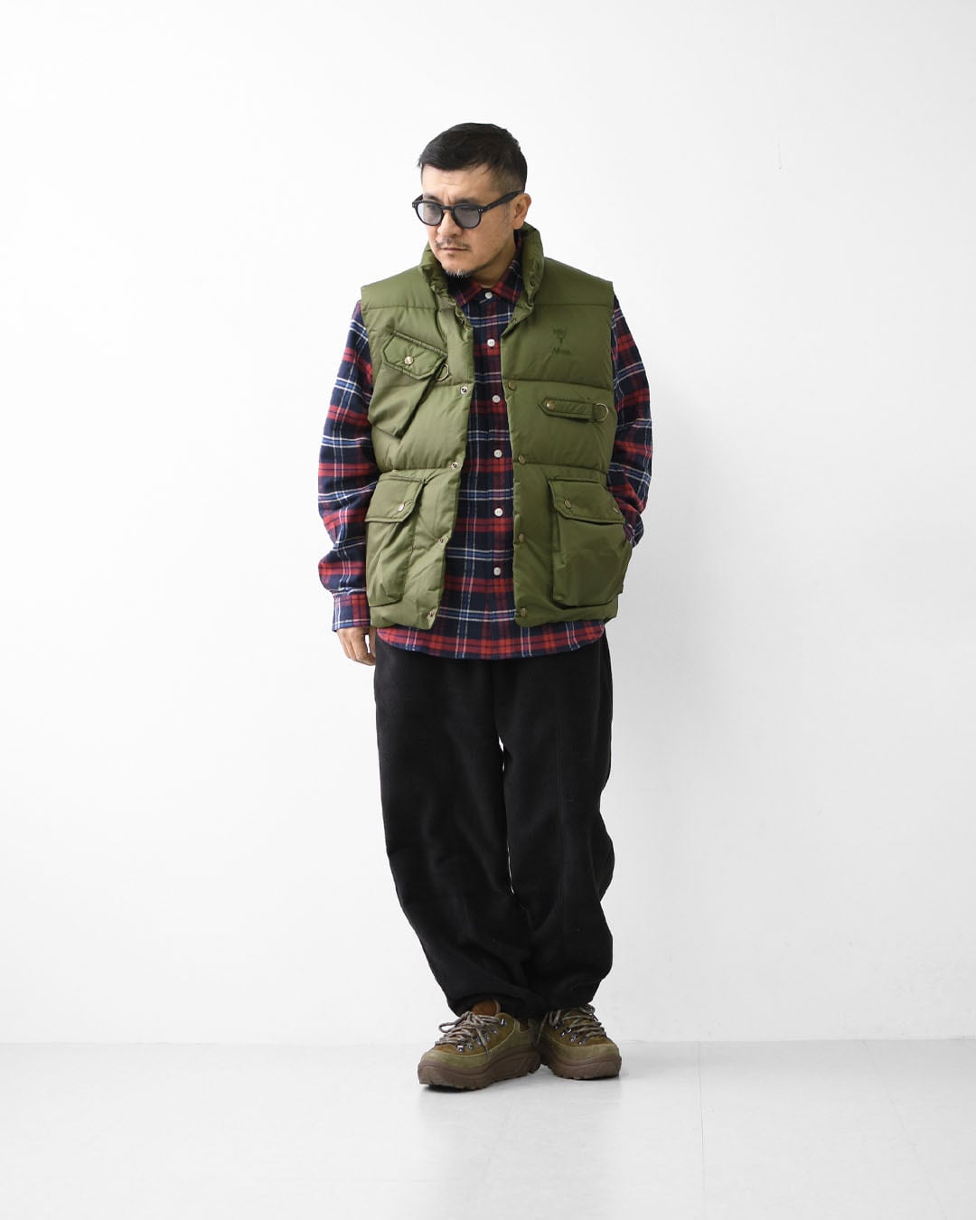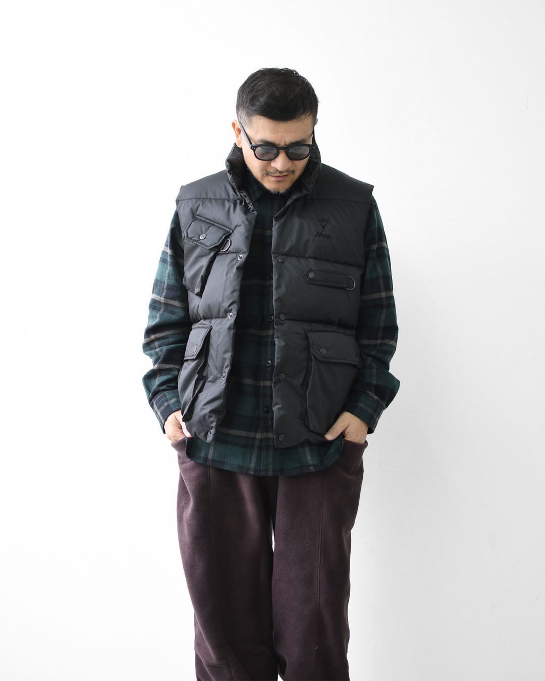 〈NANGA〉の確かなダウン品質と、〈SOUTH2 WEST8〉らしいフィッシング要素を掛け合わせたコラボダウンベスト。