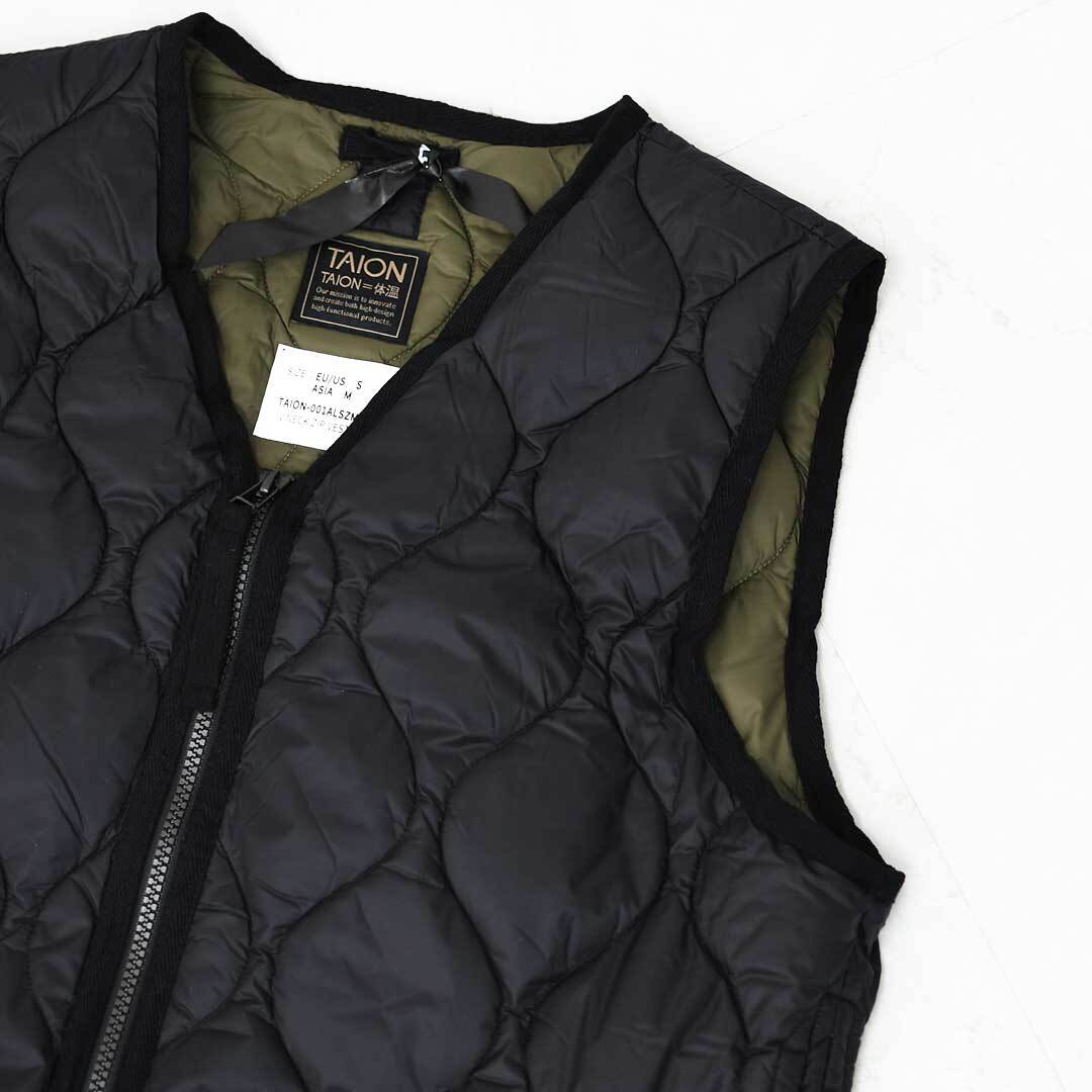 TAION[タイオン] MILITARY CREW NECK BUTTON DOWN VEST [001ALSZML-1] ミリタリー クルーネックボタン ダウンベスト・ダウンベスト・ミリタリー・クルーネック・収納袋付き・コンパクト・ユニセックス・MEN'S / LADY'S [2025AW]