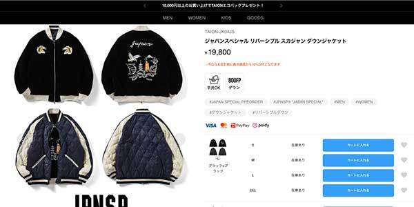 スカジャンとダウンを組み合わせた、スカジャン風リバーシブルダウンジャケット。
