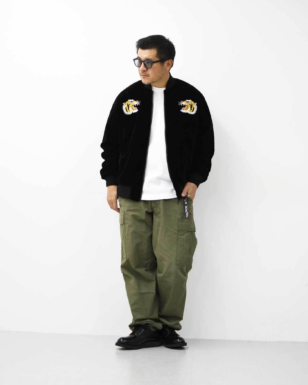 TAION[タイオン] REVERSIBLE -SKAJAN- DOWN JACKET [JK04JS] ジャパンスペシャル リバーシブル スカジャン ダウンジャケット・刺繍・虎・タイガー・ベロア素材・ナイロンジャケット・ミリタリー・クルーネック・ユニセックス・MEN'S / LADY'S [2025AW]