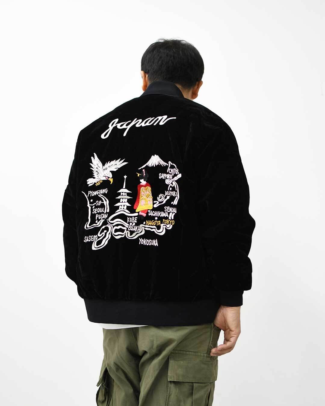 ・表地には、ベロア生地に前後スカジャン風の刺繍を入れています。