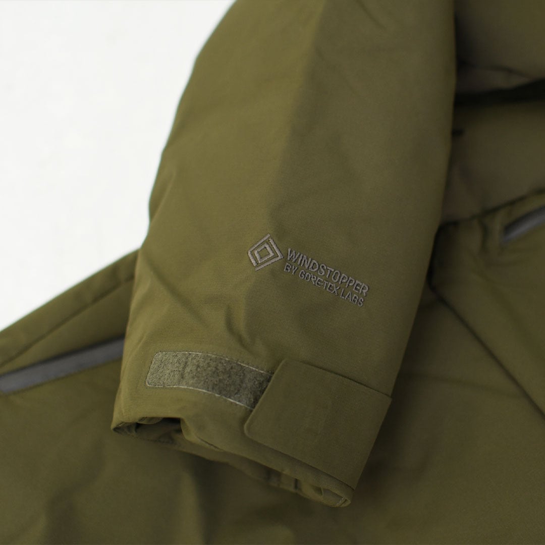 「GUARANTEED TO KEEP YOU DRY(R)」をプロミスに掲げるアメリカ・ゴア社が開発した、耐水性、透湿性、防風性を持つ WINDSTOPPER(R) プロダクト by GORE-TEX LABS を採用したダウンパーカ。