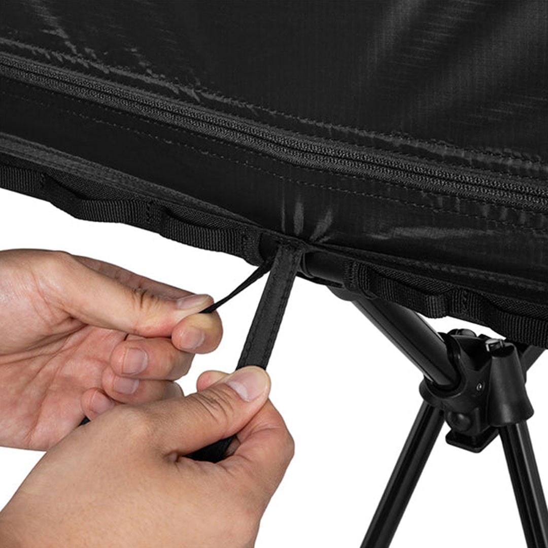 テントはコットにしっかりと固定されるため、安定した快適な睡眠をサポートします。