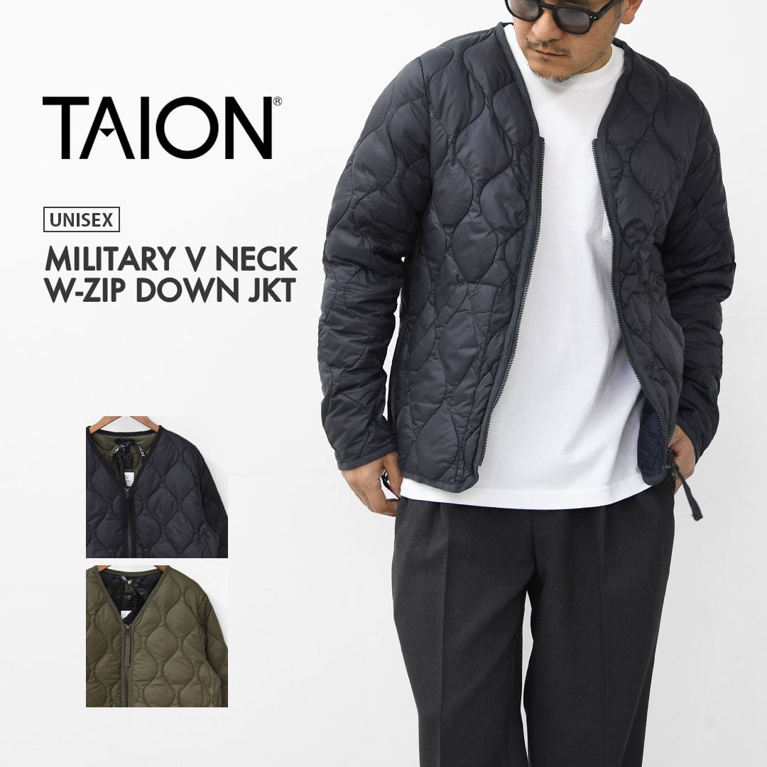 TAION[タイオン] MILITARY V NECK W-ZIP DOWN JKT [101ALSZML-1] ミリタリー VネックWジップ ダウンジャケット・ダウンジャケット・ミリタリーダウンジャケット・Vネック・Wジップ・収納袋付き・ソフトシェル・ユニセックス・MEN'S / LADY'S [2025AW]