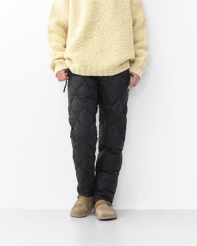 軽くて暖かく柔らかい、ミリタリーテイストのダウンパンツです。