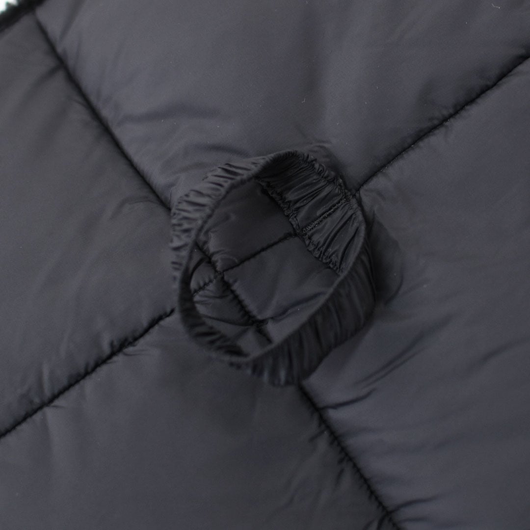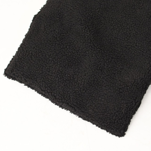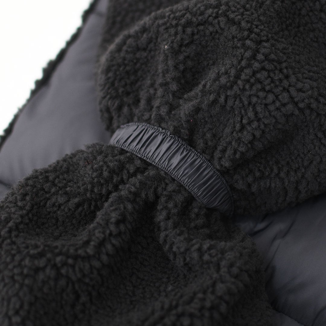 表面には落ち着いた光沢のあるナイロン素材、裏側には肌あたりの良いボアフリースを採用。