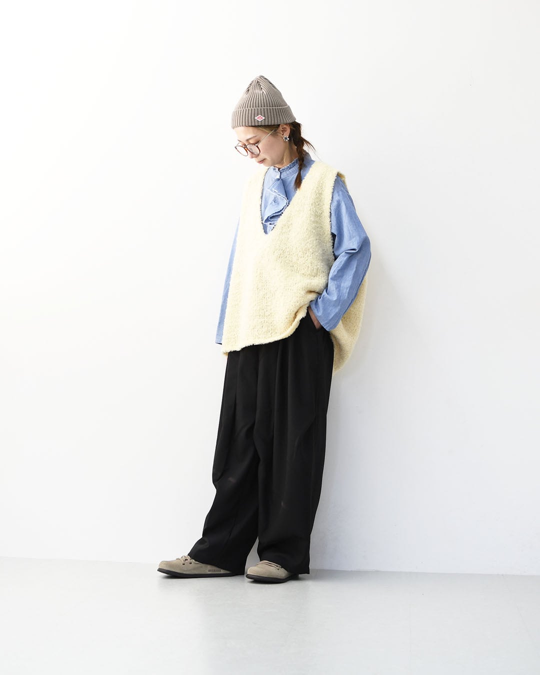 カジュアルになりすぎず、きれいめに穿けるmizuiro indの定番人気アイテムです。