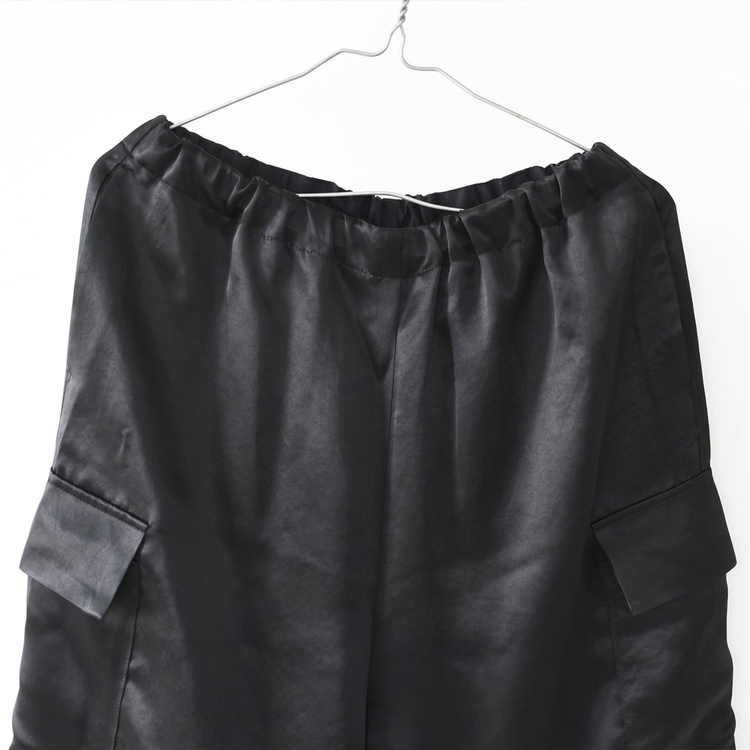 上品な光沢感が魅力のサテンカーゴパンツ。