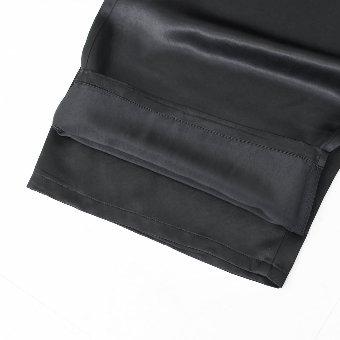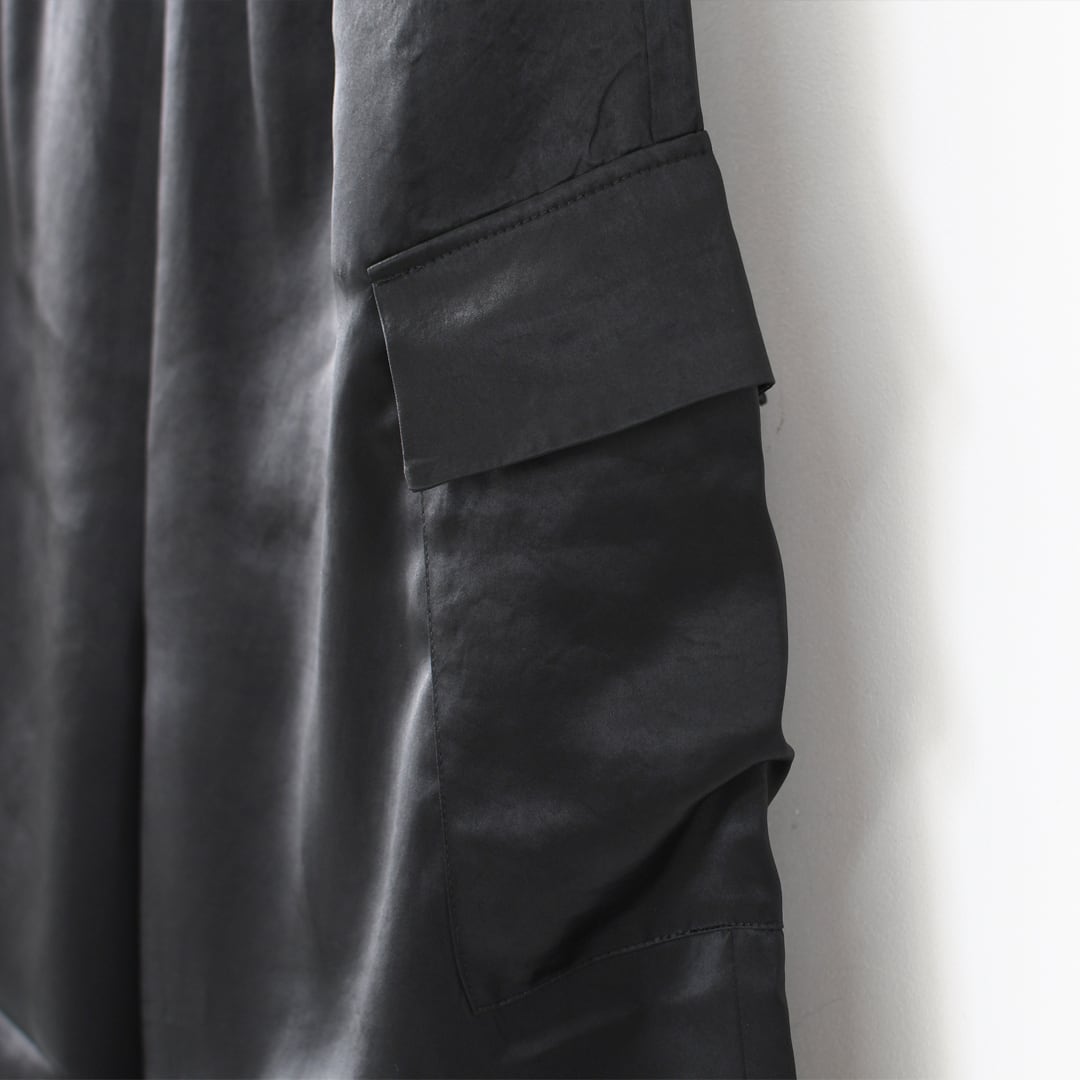 シルクのような光沢感があり、さらりとした肌触りのアセテート素材を使用し、カジュアルになりがちなカーゴデザインを大人っぽく仕上げています。