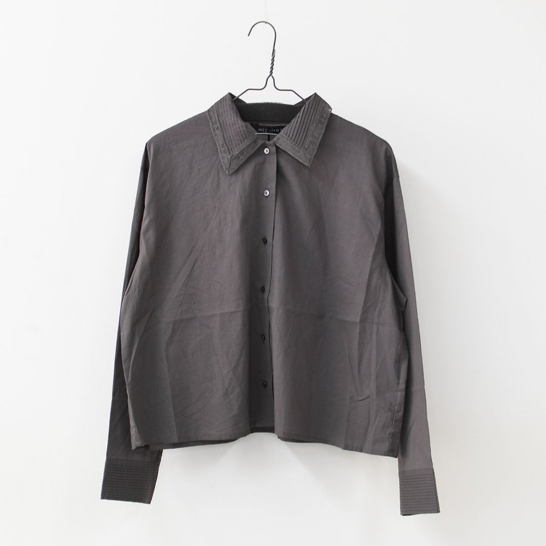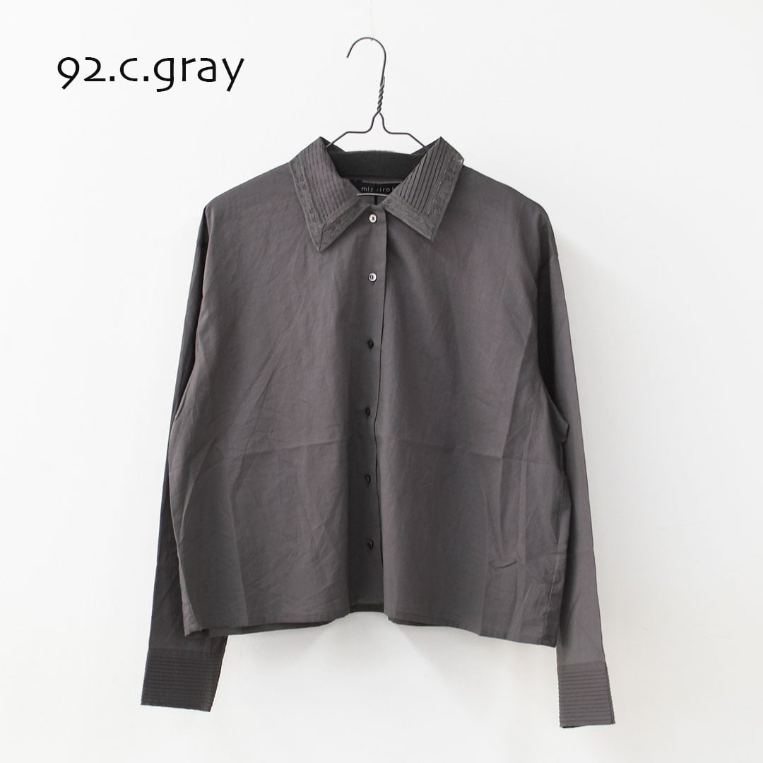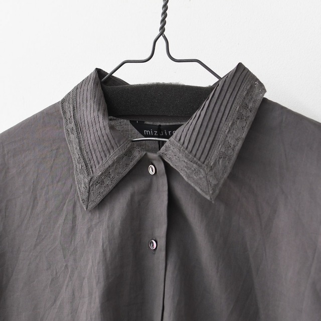 mizuiro indらしい繊細なピンタックを襟元に施したシャツです。
