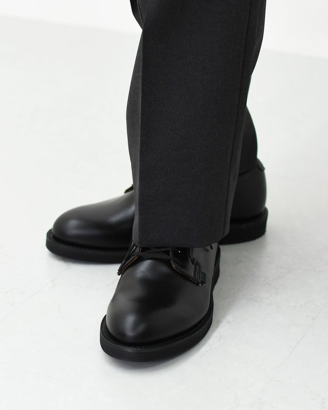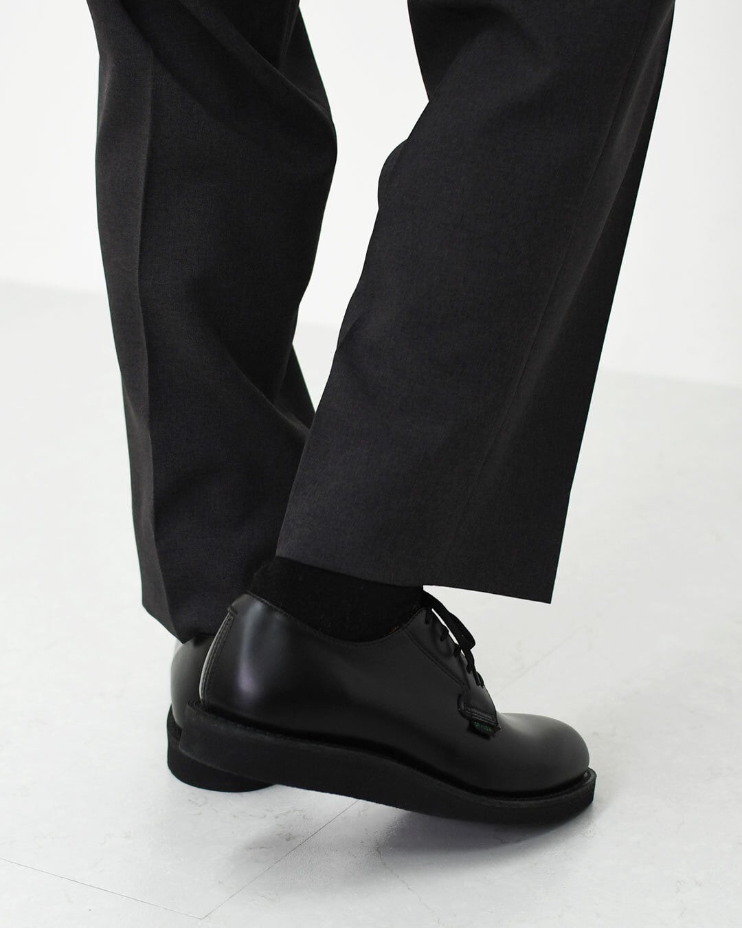 制服に合うフォーマルなシェイプ、品のある光沢を持ち雨にも強いレザー、長い距離を歩いても疲れにくい靴底などの組み合わせです。特に、クッション性に富む柔らかいラバー製の厚いソールを、