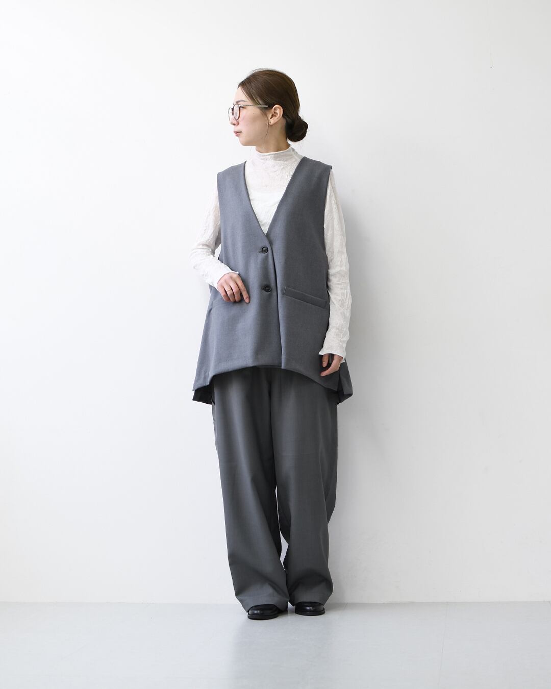 【mizuiro ind】deep V neck wide vest [3-230108]