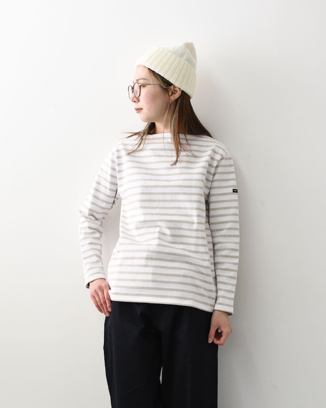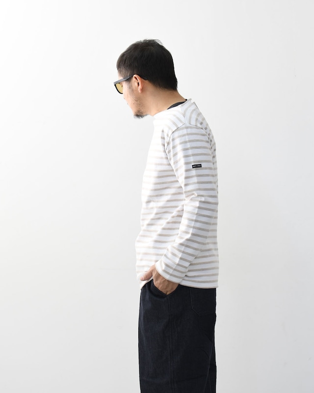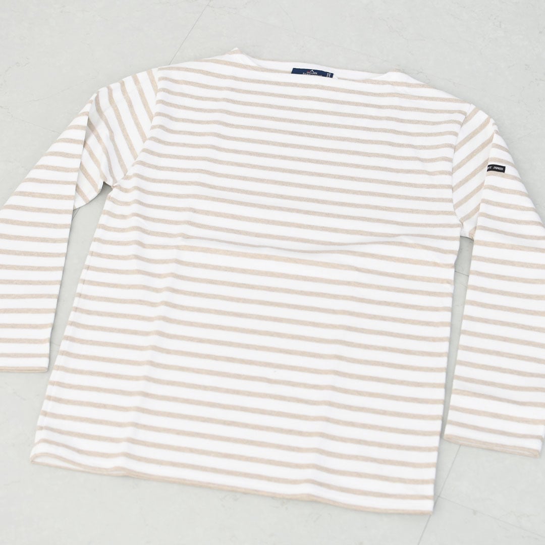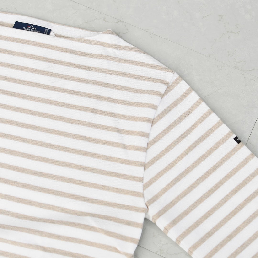 SAINT JAMES [OUESSANT BORDER - NEIGE×NATUREL] [bo-nei-nat] セントジェームス 正規販売店・カットソー・バスクシャツ・コットン・長袖Tシャツ・ポートネック・ウエッソン ボーダー・白白×ナチュラルベージュ [2026SS]