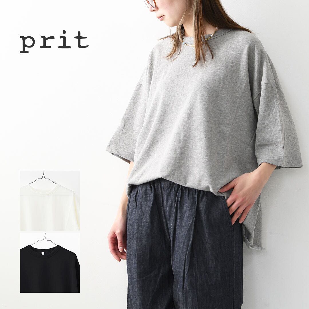 prit [プリット] 40/1強撚糸スビン裏毛5分袖クルーネックワイドTシャツ [P91619] ワイドTシャツ・5分袖Tシャツ・クルーネック・無地・シンプル・LADY'S [2026SS]