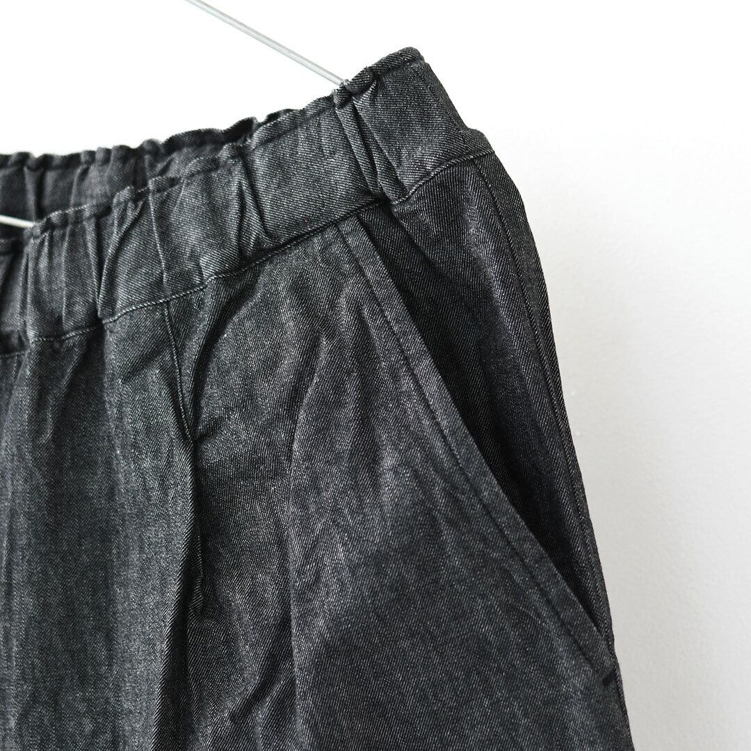 ヒップから太ももにかけては程よくゆとりを持たせ、裾に向かってきれいに細くなるテーパードシルエット。
