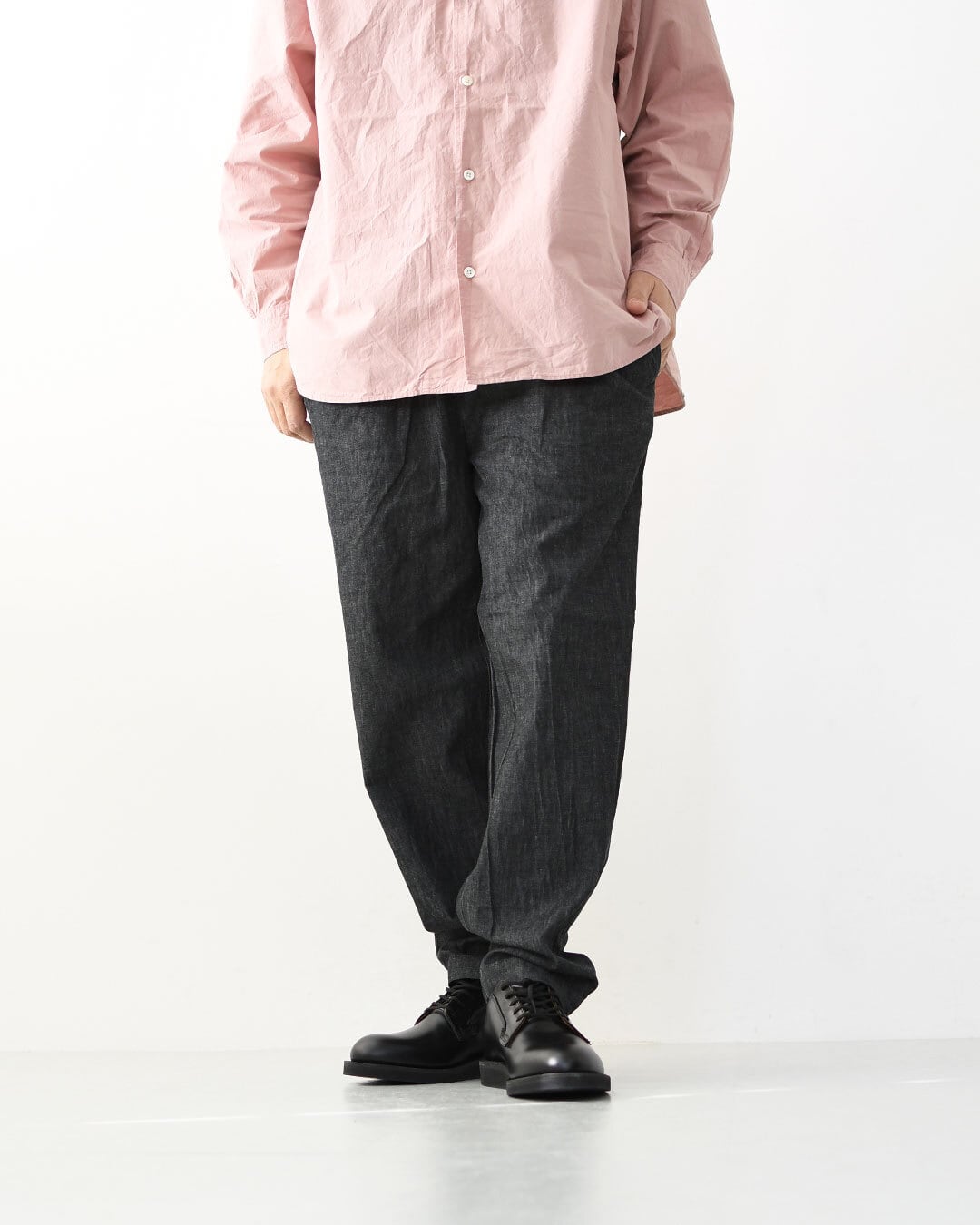 軽やかな6オンスコットンを使用した、RINEN定番のテーパードパンツ。