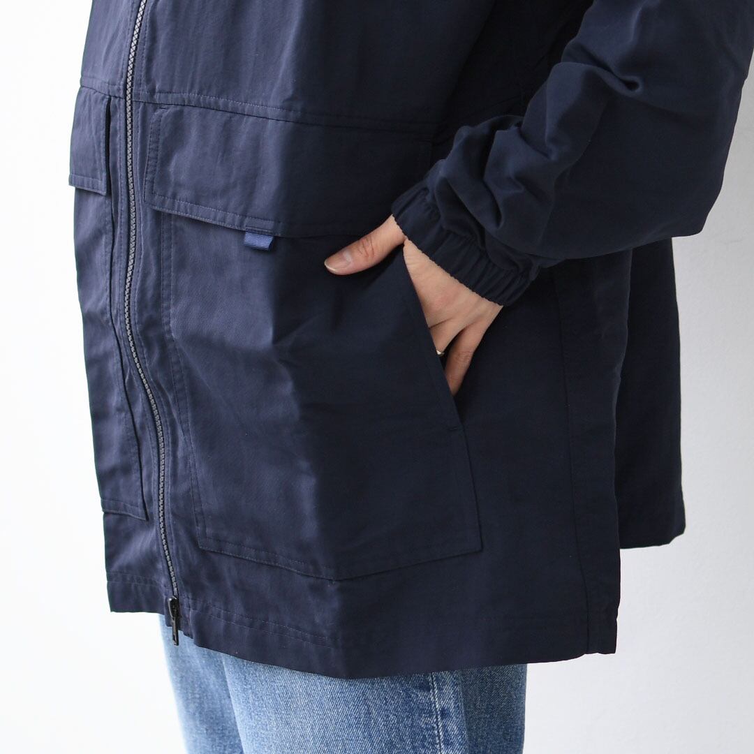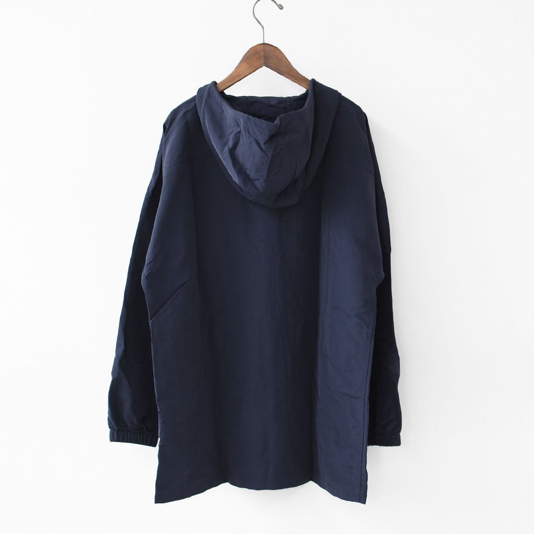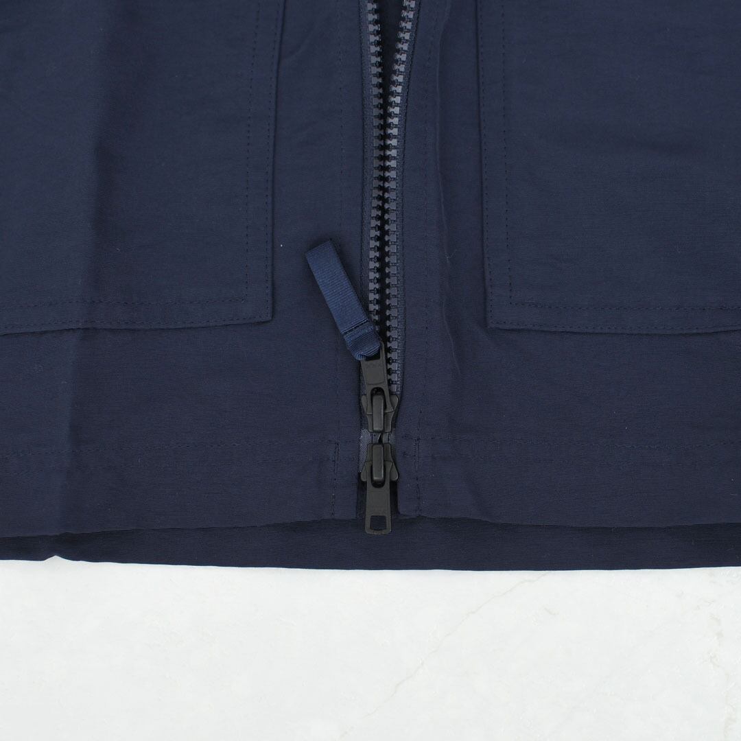 ドロップショルダーのデザインで、ヒップの下までカバーするリラックス・フィットのスカイセイル・アンラインド・パーカは、快適なリサイクル・ナイロン100%素材のファイユにPFASを意図的に添加せずに製造されたDWR(耐久性撥水)加工済み。