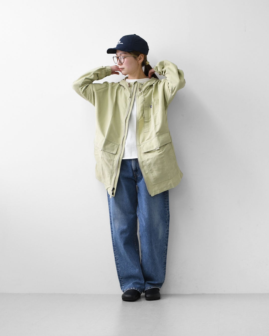 ドロップショルダーとヒップまでカバーするリラックス・フィットにより、軽量なロングコートとして理想的
