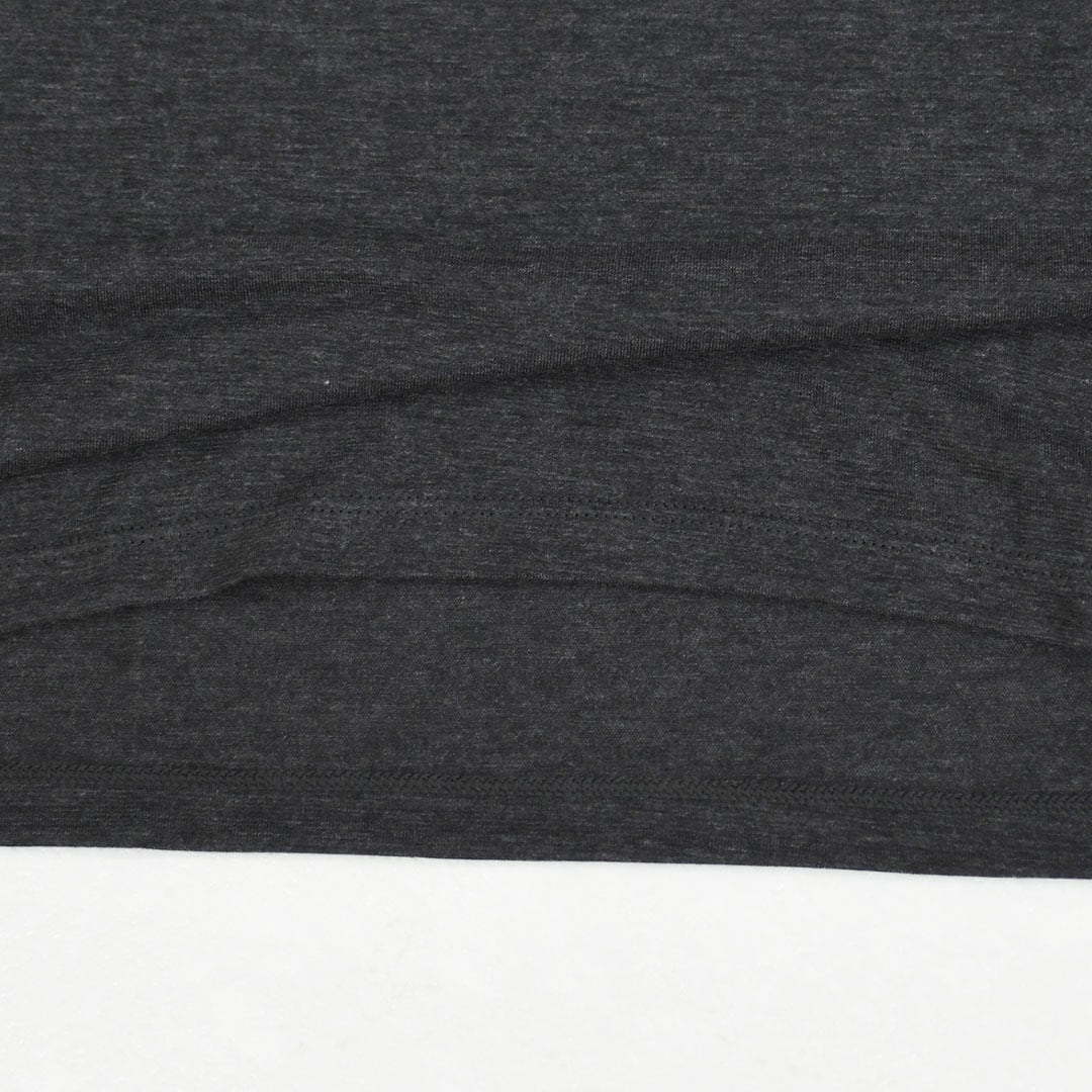 3.8オンス・リサイクル・ポリエステル85%/テンセル・リヨセル15%のジャージー。吸湿発散性と柔軟性を高めるミドリ・バイオソフトを施し、ハイキュ・ミント防臭加工済み。フェアトレード・サーティファイドの工場で製造