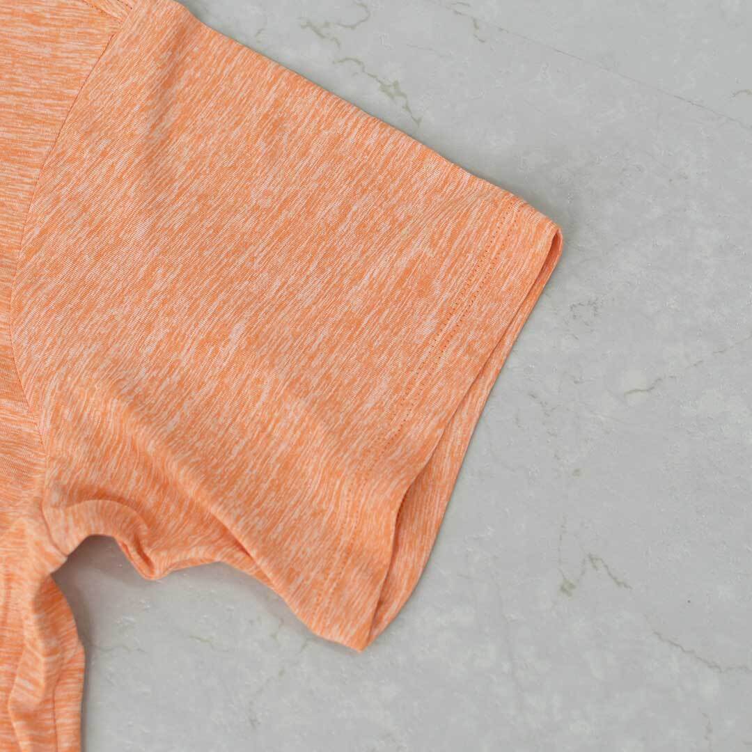 吸湿発散性を備えた3.7オンス・ポリエステル100%(リサイクル・ポリエステル50%)のジャージー。ハイキュ・ミント防臭加工済み。ブルーサインの認証済み。フェアトレード・サーティファイドの工場で製造