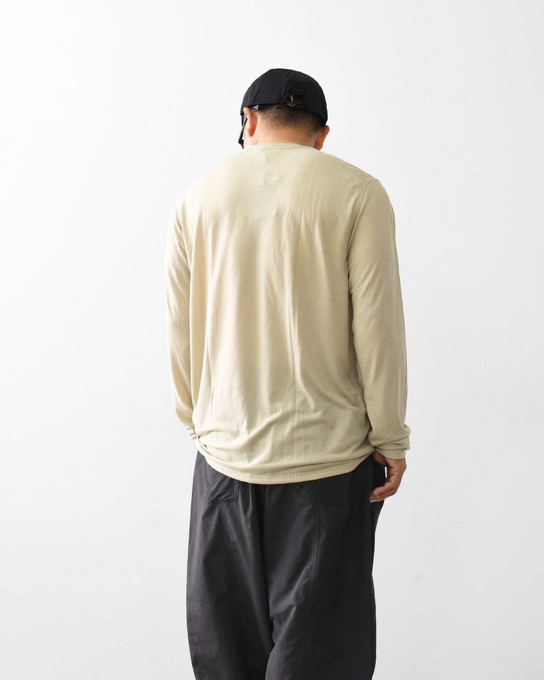 肌から汗を吸い上げて涼しい着心地を保つオープンニット構造を採用した、リサイクル・ポリエステル85%/テンセル・リヨセル15%のジャージーにハイキュ・ミント防臭加工済み。