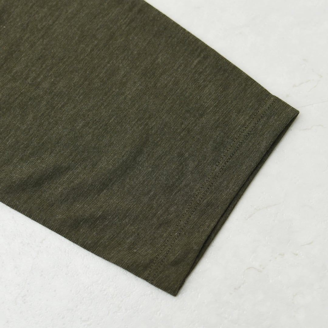 素材は伸縮性と通気性に非常に優れ、コットンのようにソフトなリサイクル・ポリエステル85%/テンセル・リヨセル15%のリングスパン・ジャージーで、さわやかな着心地が持続するハイキュ・ミント防臭加工済み
