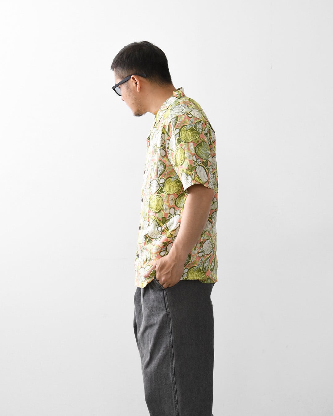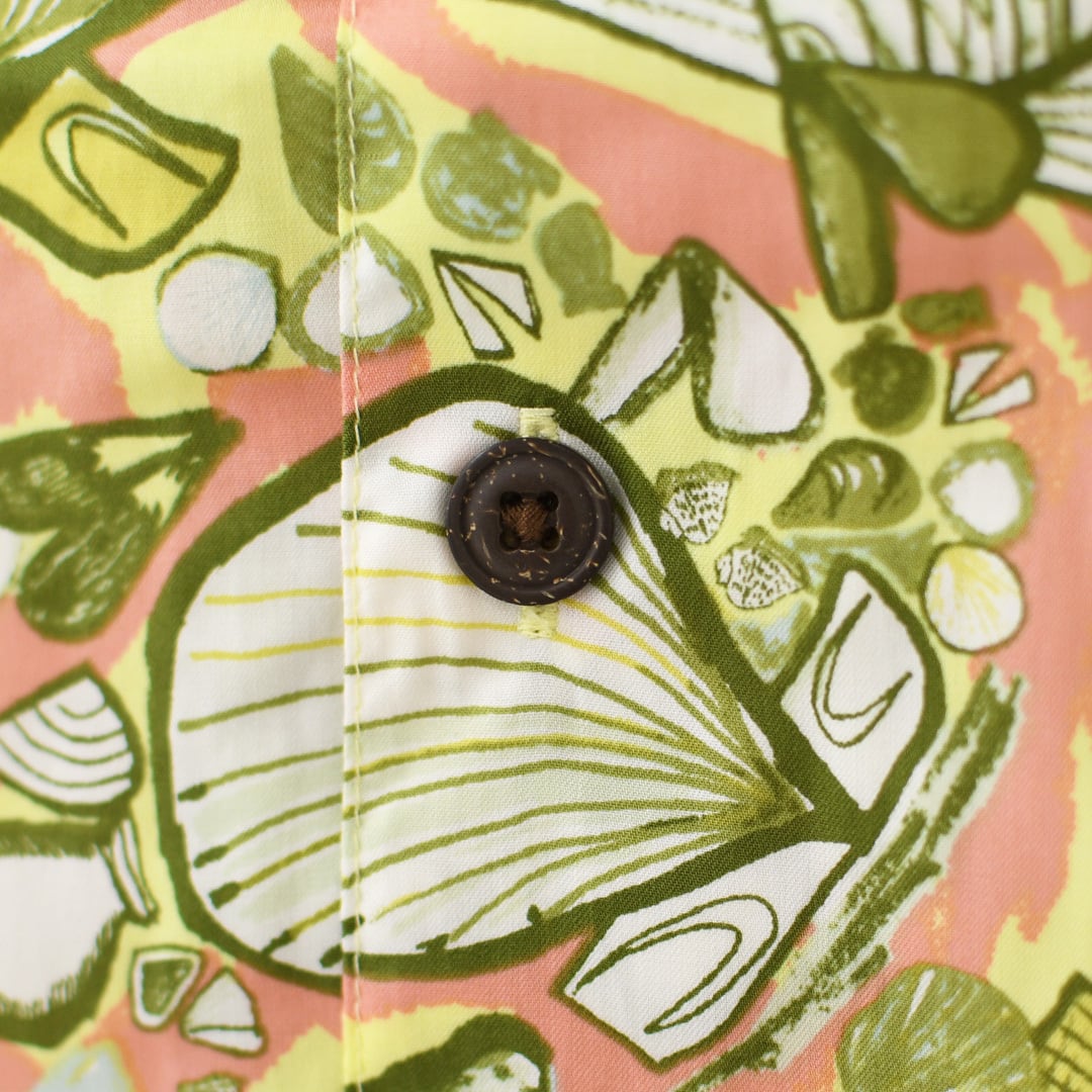 ココナツボタン留めの前立てを備えた南国風のデザイン