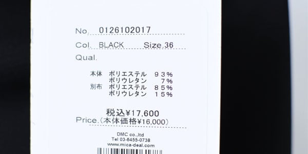 素材 本体:ポリエステル 93% ポリウレタン 7% 別布:ポリエステル 85% ポリウレタン 15%