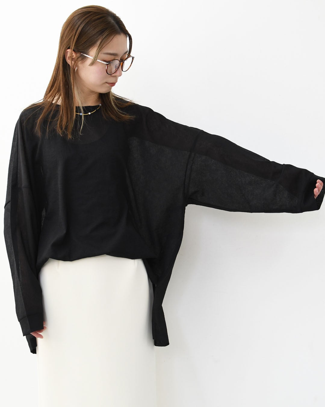 mizuiro ind [ミズイロ インド] washer voile wide P/O [1-210070] ウォッシャーボイルワイドプルオーバー・クルーネック・ワイドシルエット・ゆったりシルエット・シースルー・シアー・透け感・LADY'S [2026SS]