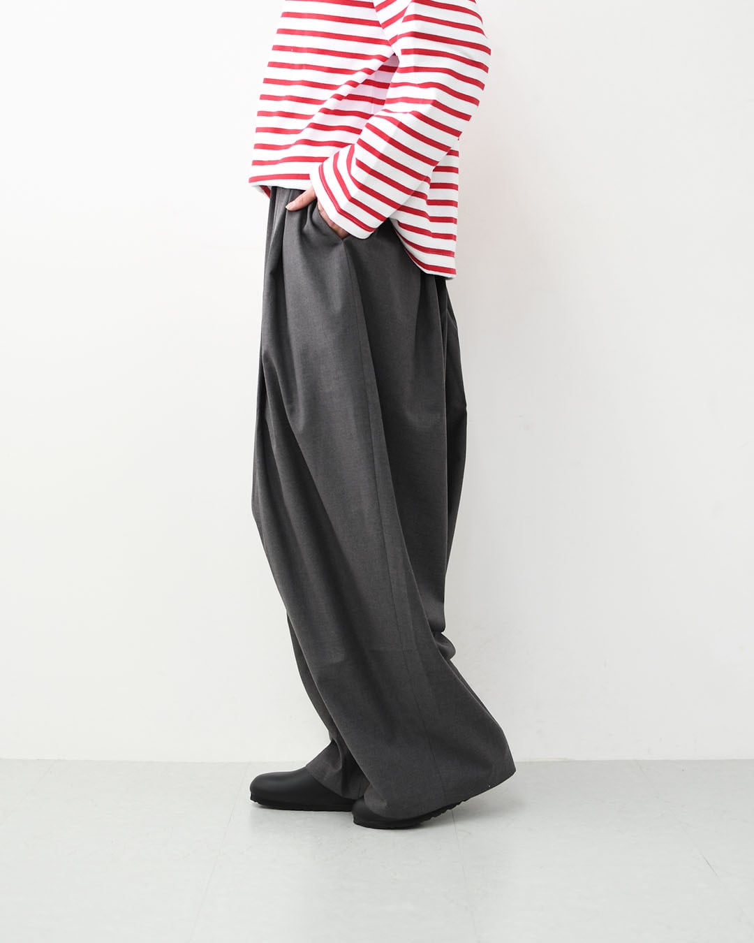 柔らかく程よい落ち感のある素材に、ゆったりとしたワイドシルエットを合わせた一本です。