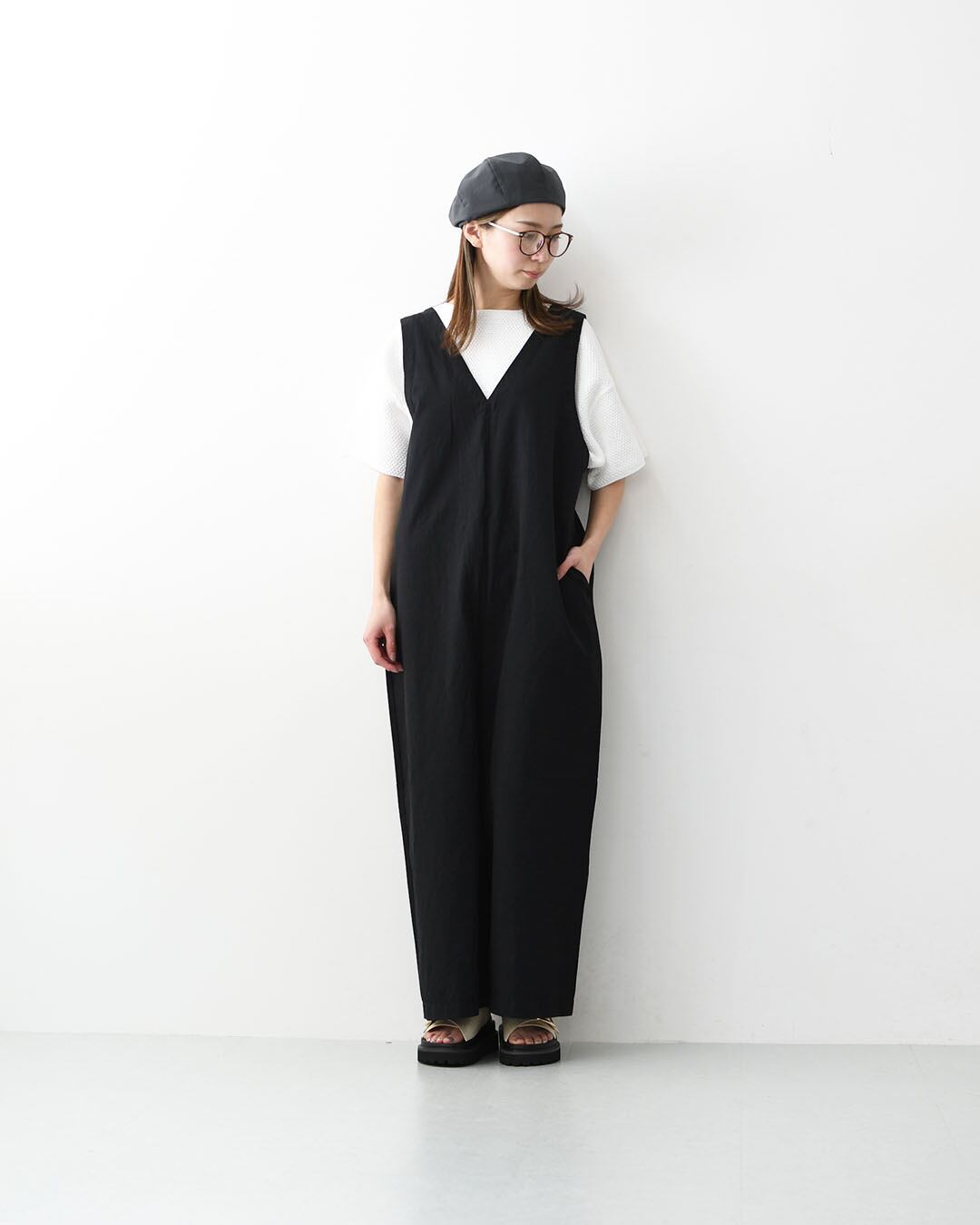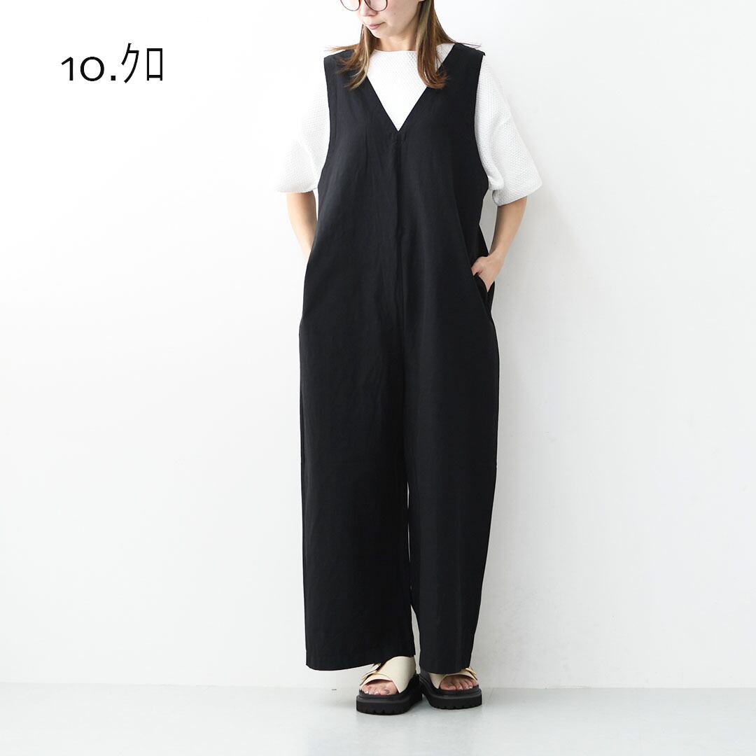 綿麻ストレッッチVネックオールインワン [P71629] LADY'S