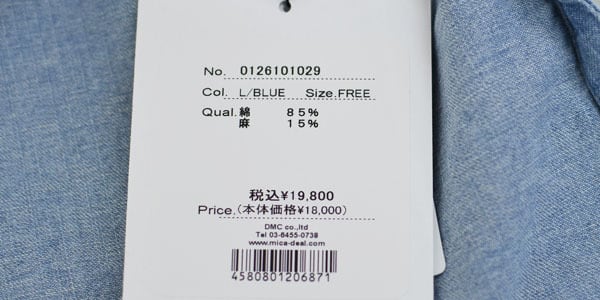 素材 綿 85%、麻 15%