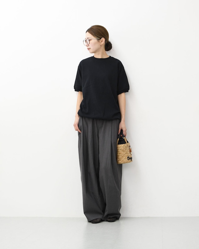 シンプルな無地デザインが魅力の、半袖リブTシャツ。