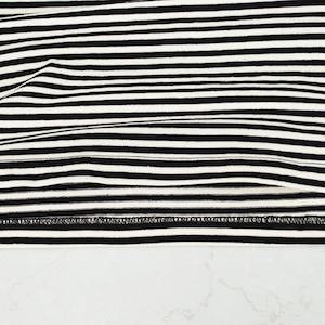 カジュアルになりすぎない細めのボーダーが、大人のデイリースタイルにちょうどいい。