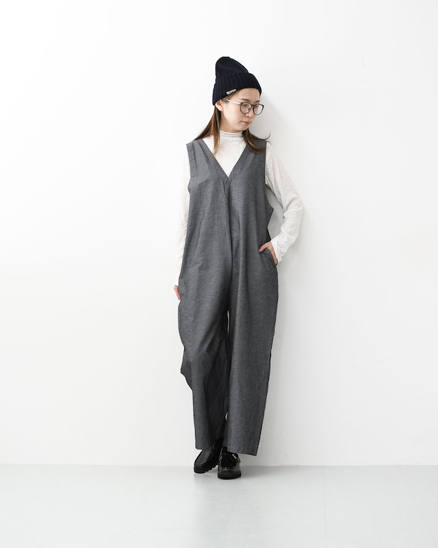 【prit】綿麻ストレッッチVネックオールインワン [P71629]