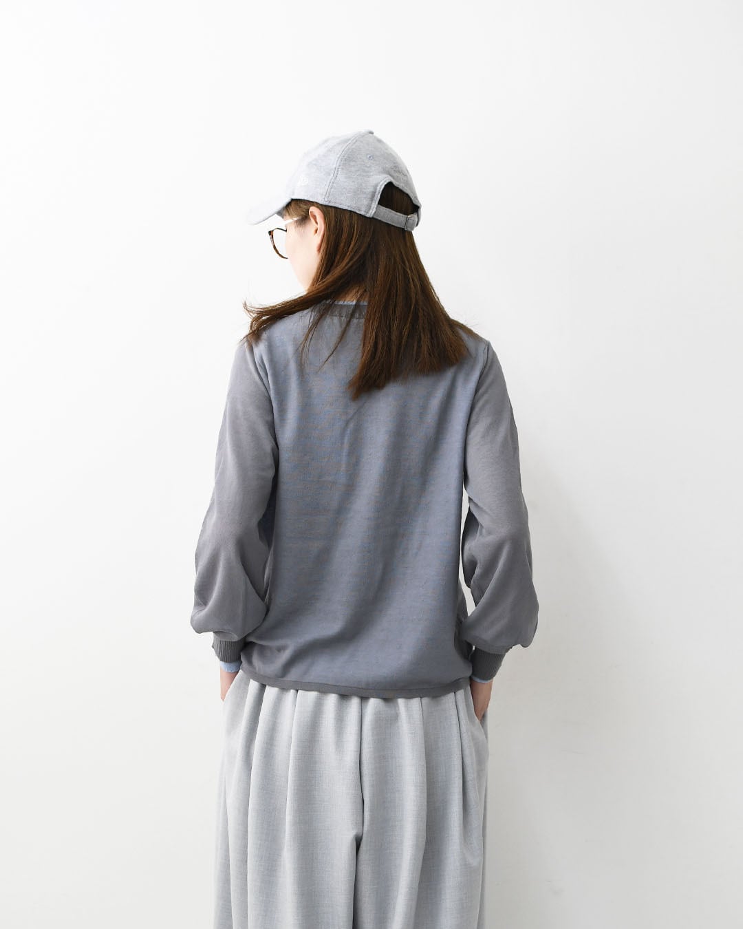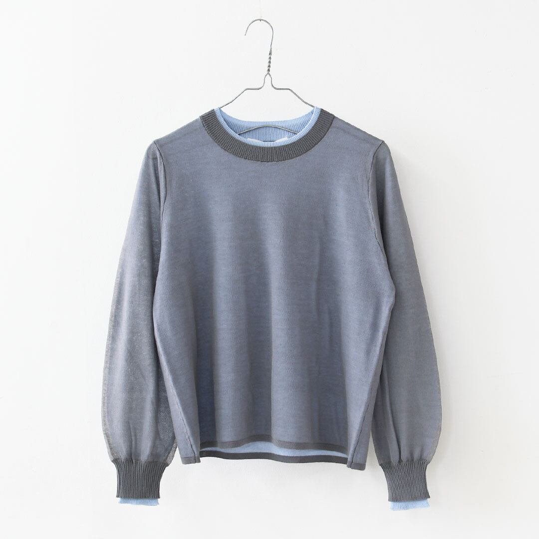 シーズンテーマである「軽さ」や「透け感」を表現した、シアーレイヤードのクルーネックプルオーバー。