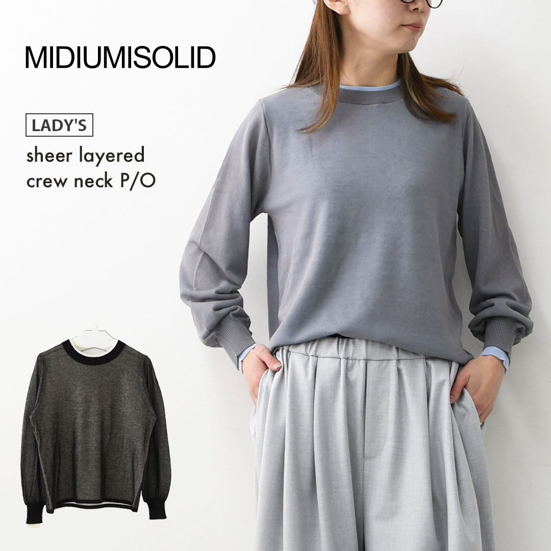 MIDIUMISOLID [ミディウミソリッド] sheer layered crew neck P/O [1-122158] シアーレイヤードクルーネックプルオーバー・インナー・カットソー・シースルー・シアー素材・ゆったりシルエット・シンプル・長袖・透け感・LADY'S [2026SS]