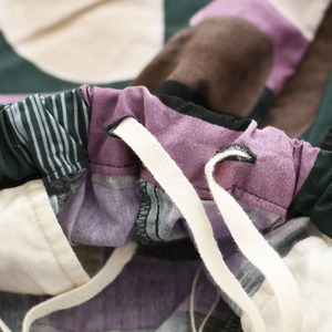 ウエストはゴムとひも仕様で、体型や着こなしに合わせて調節可能。