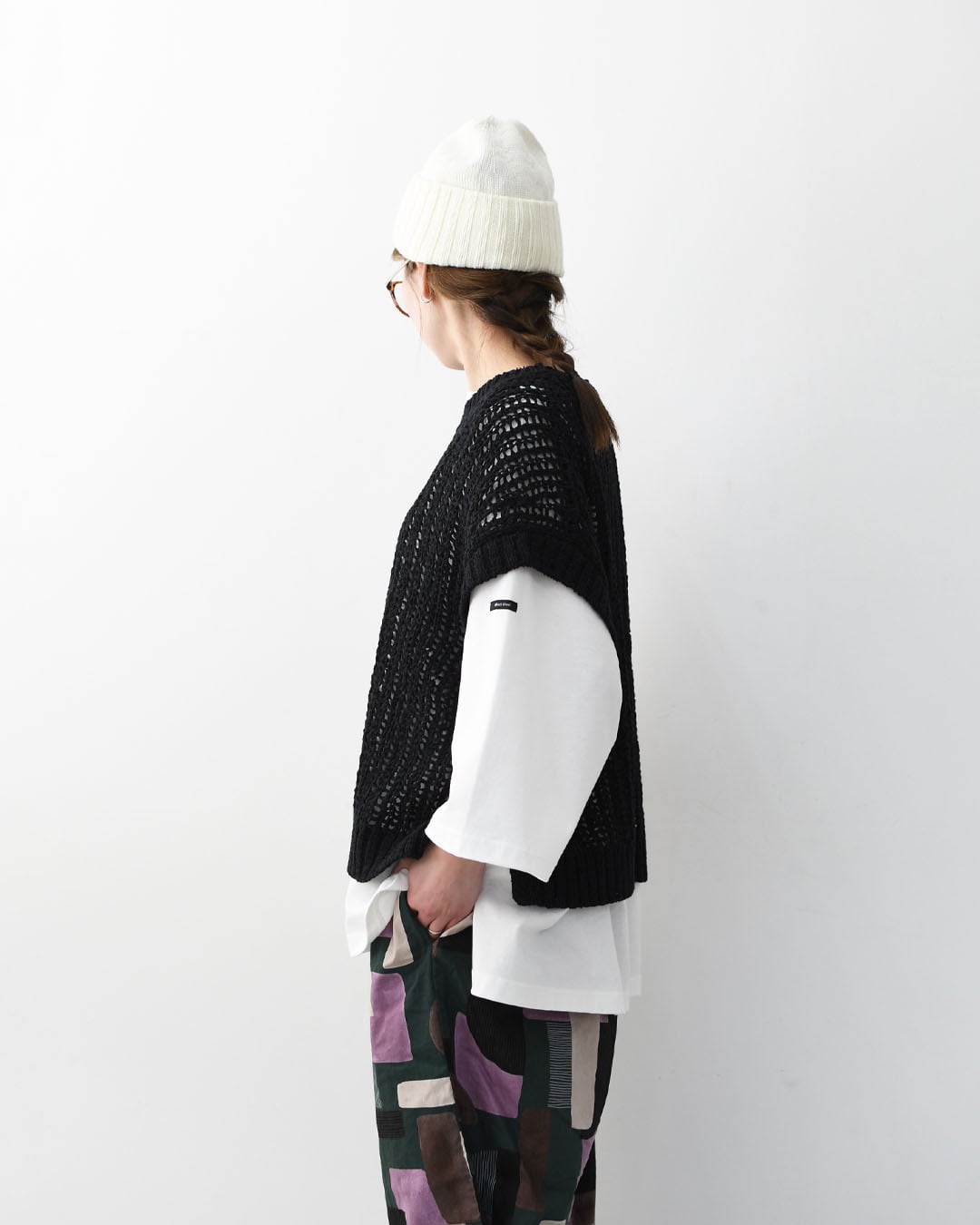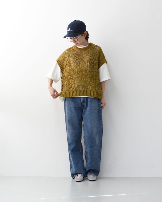 透かし編みでもヨレにくく、デイリーに気負わず取り入れられる素材感です。