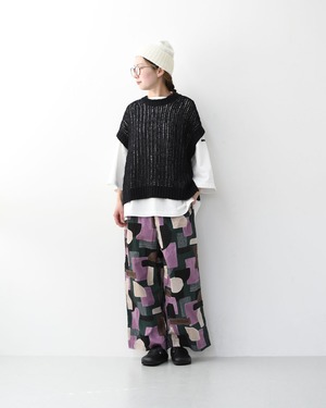【prit】40/1ブロードコラージュプリントワイドパンツ [P71621]