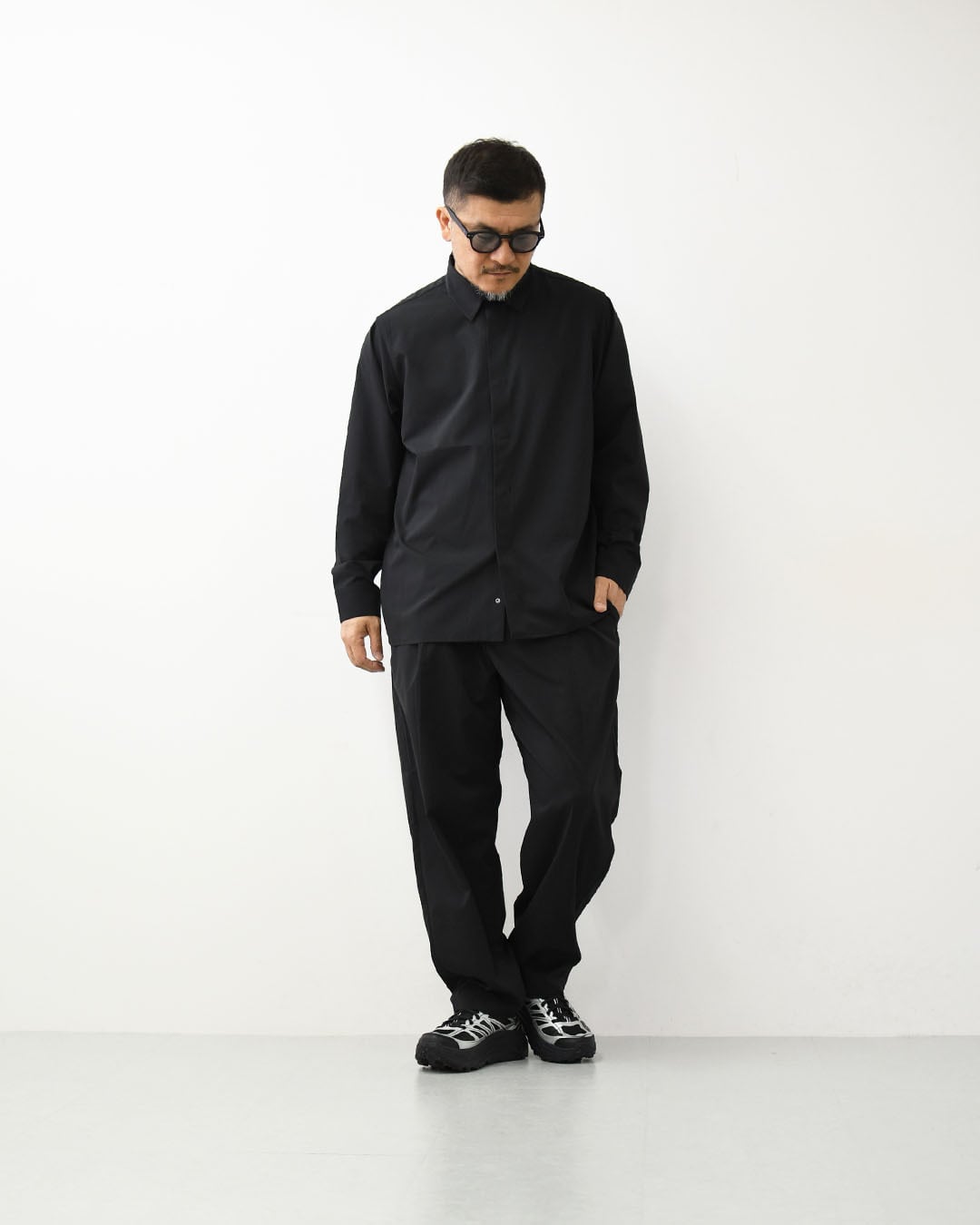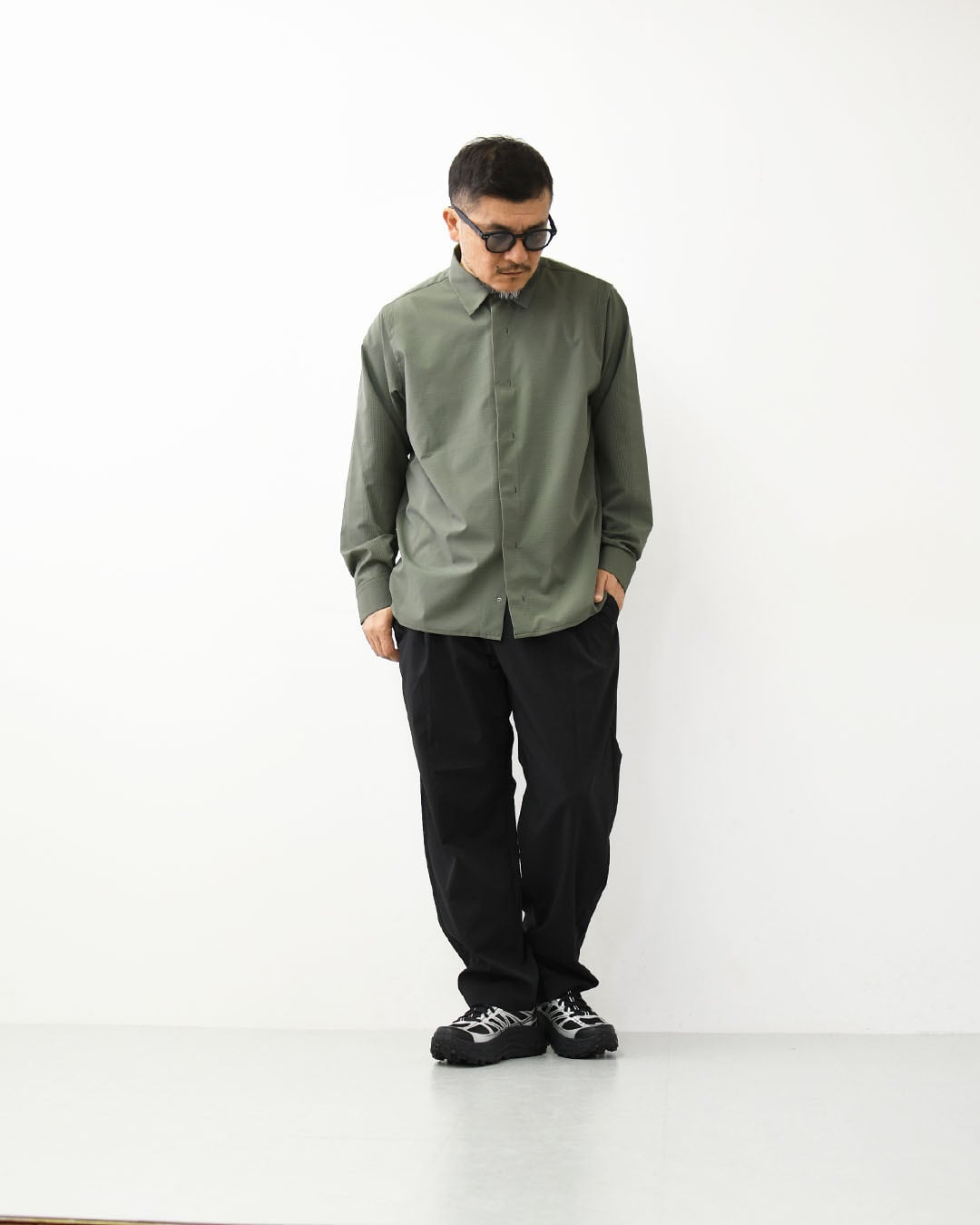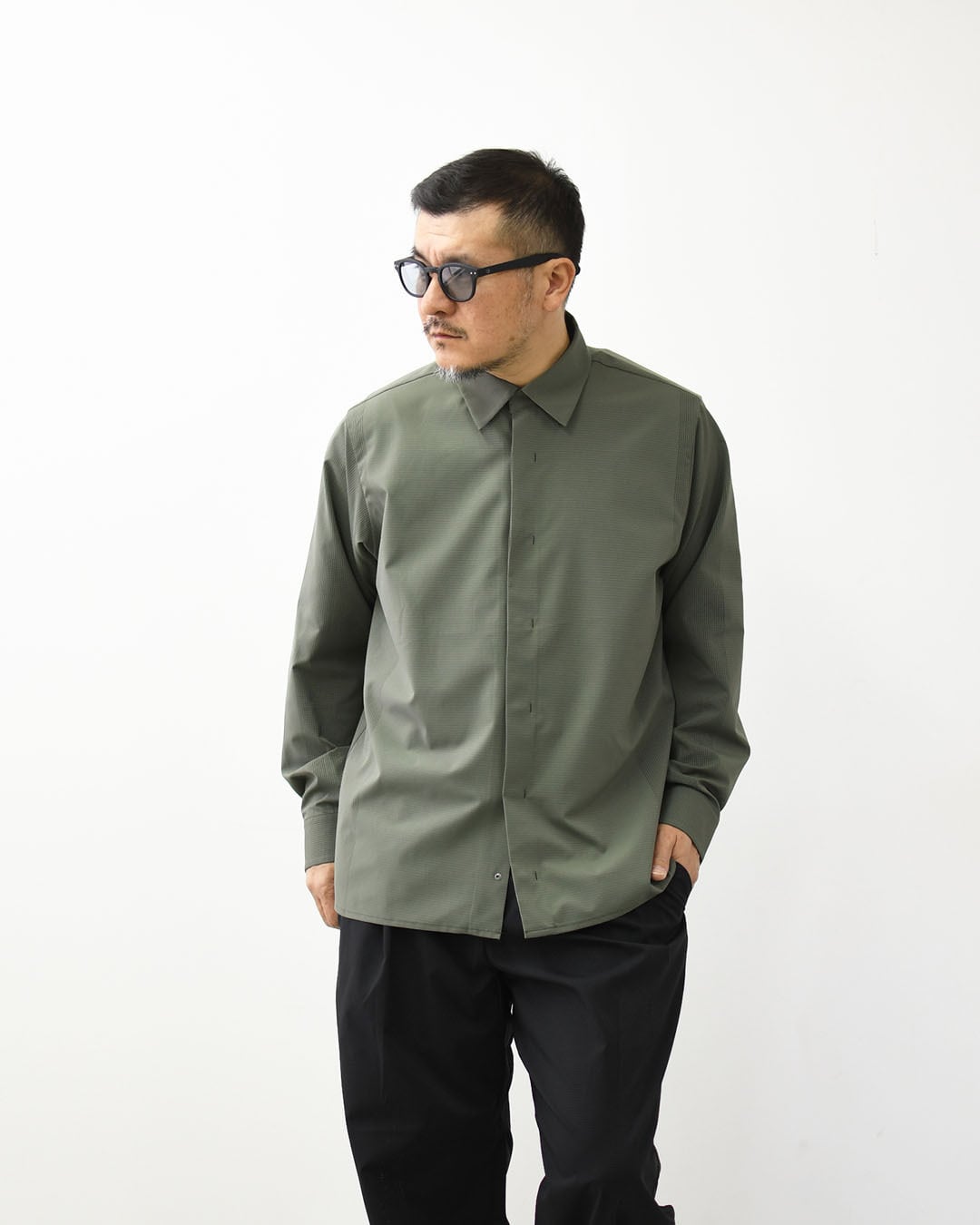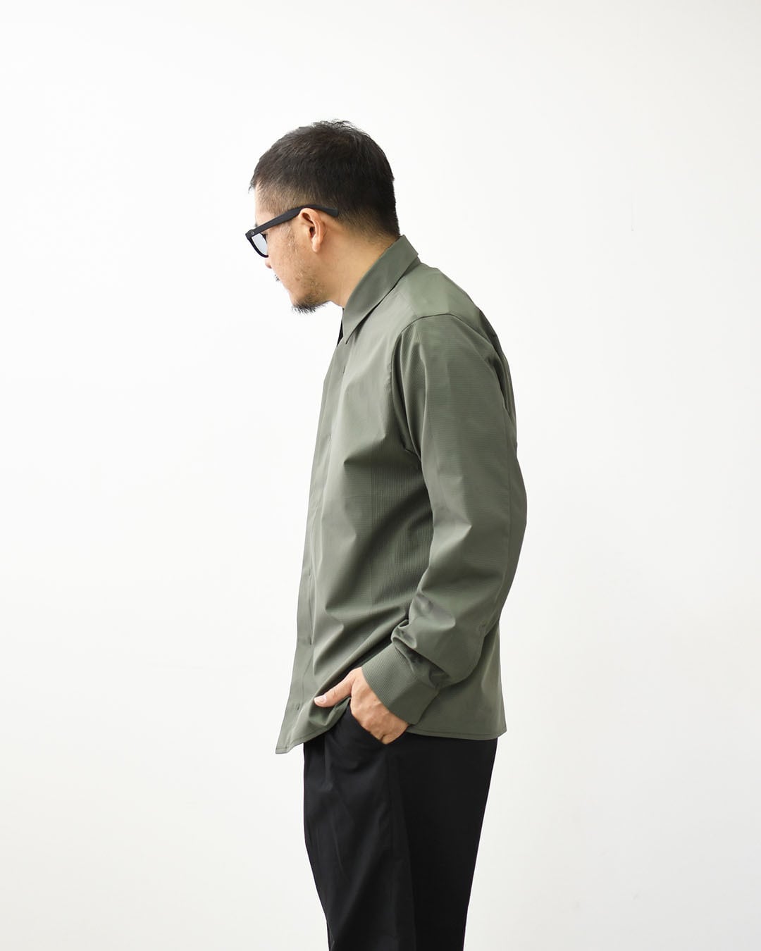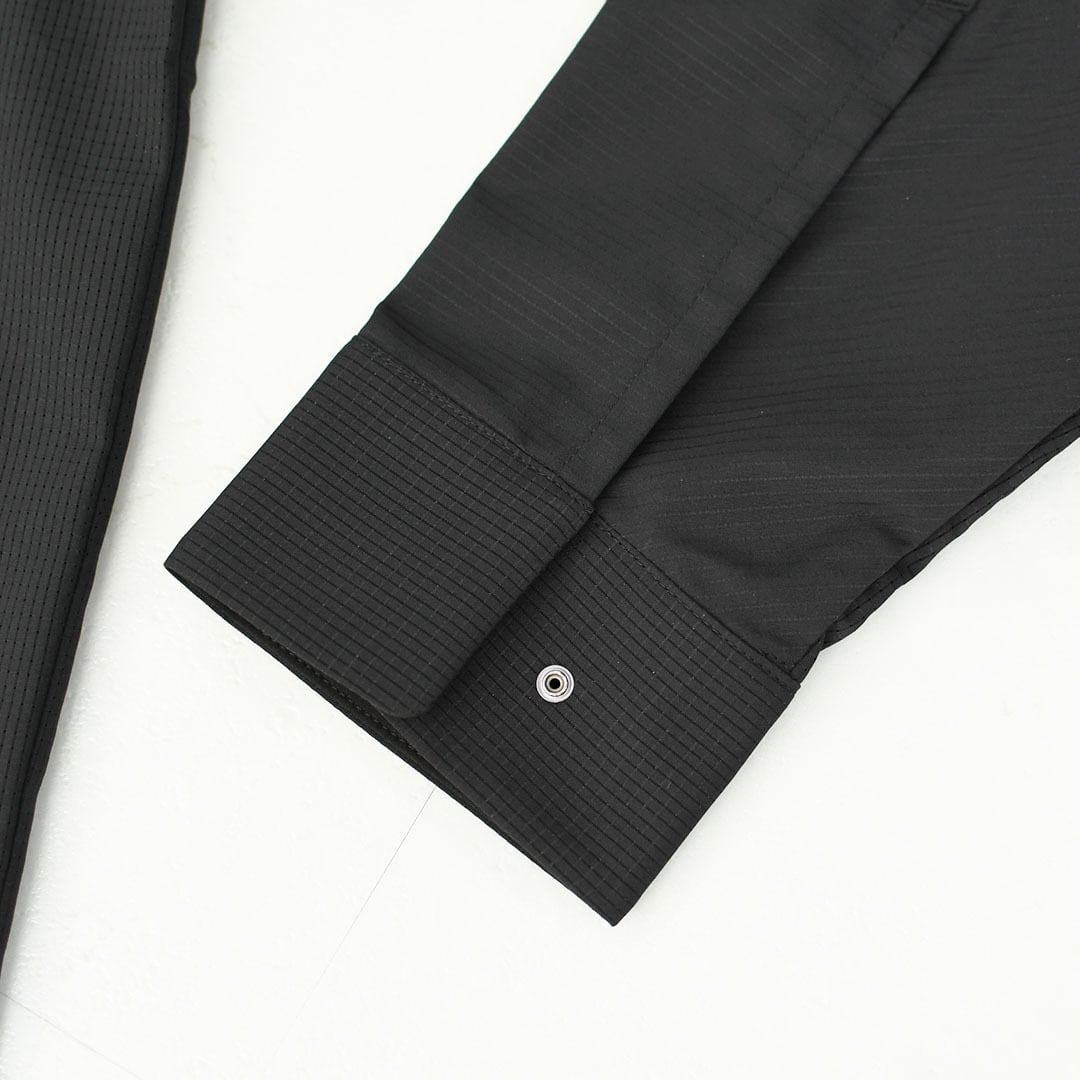 1枚の生地に特殊メッシュを部分的に配置し、効果的なベンチレーション性能を生み出すSCHEMATECH GRID AIRを使用した軽量シャツジャケット。