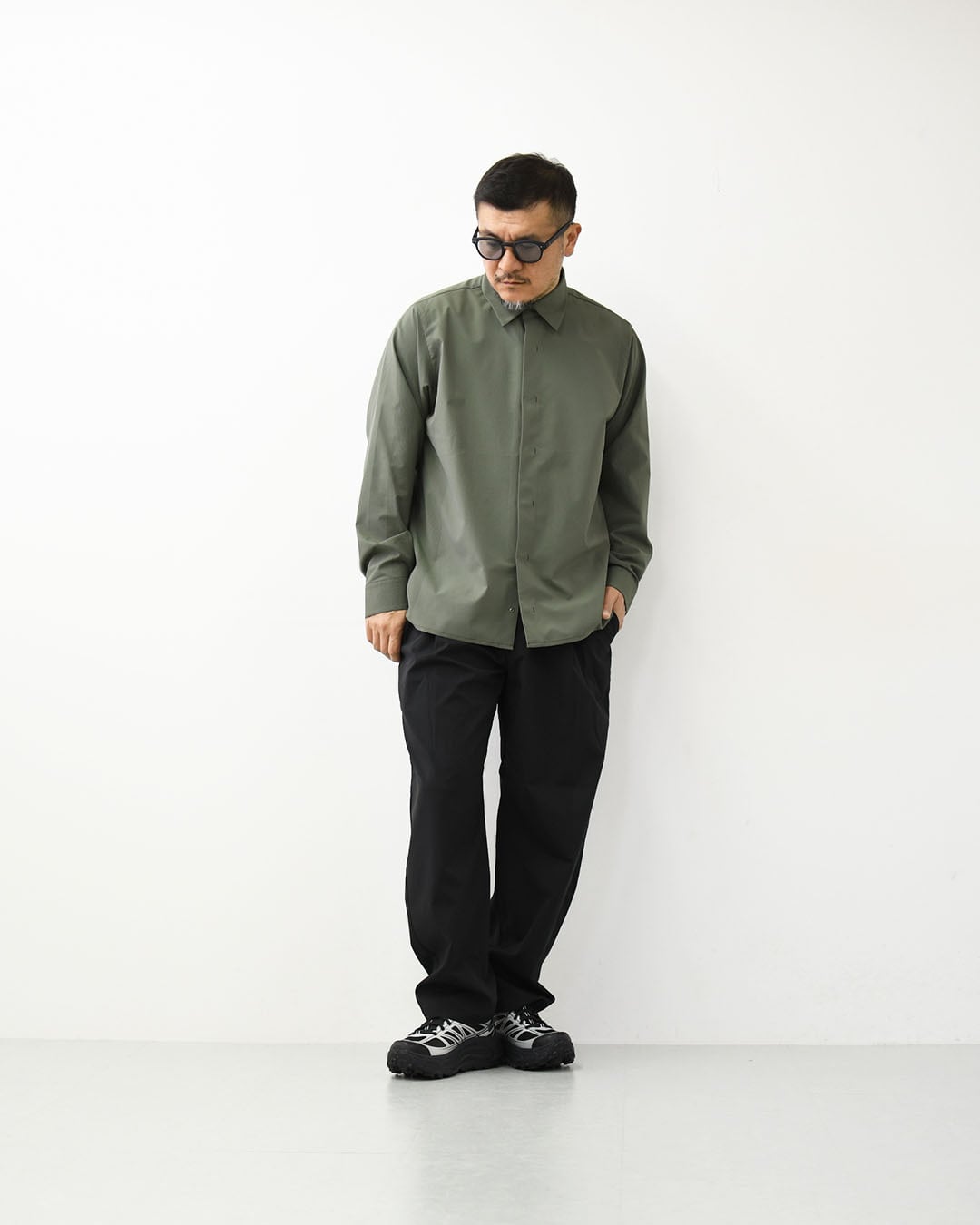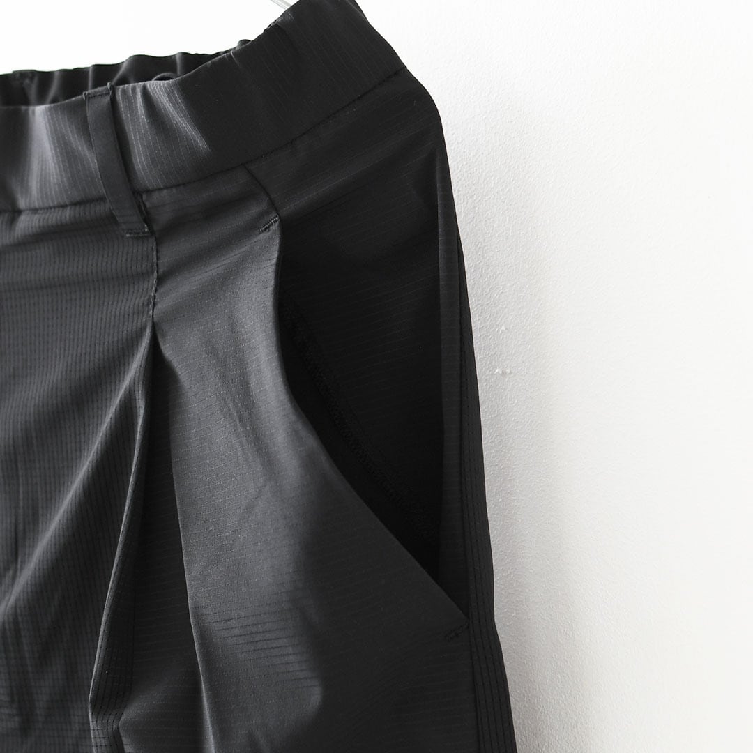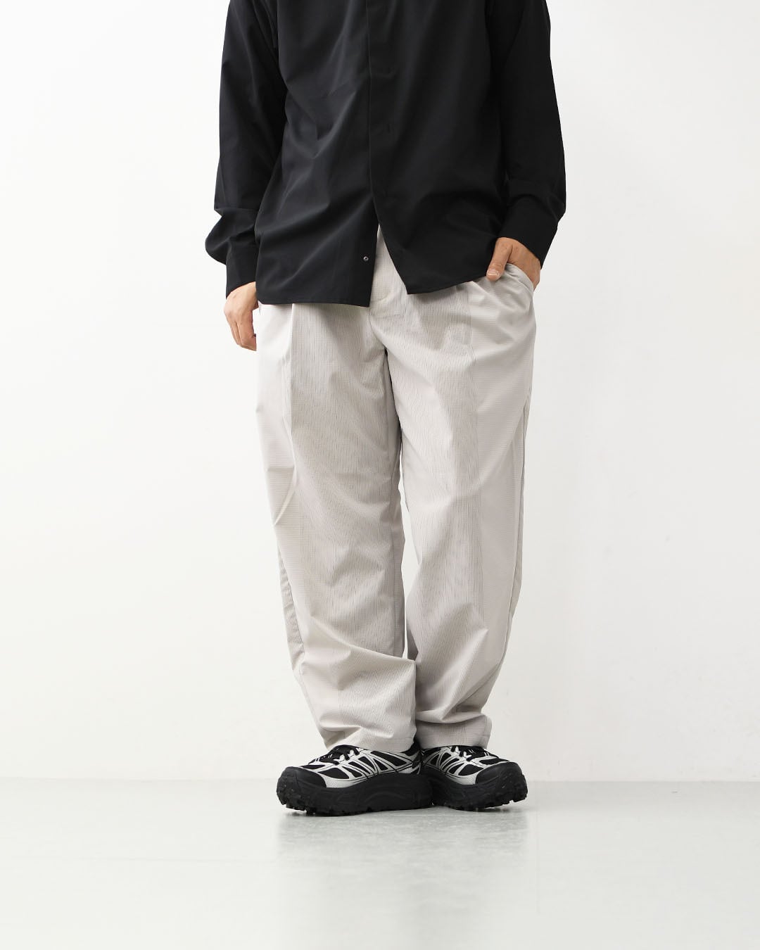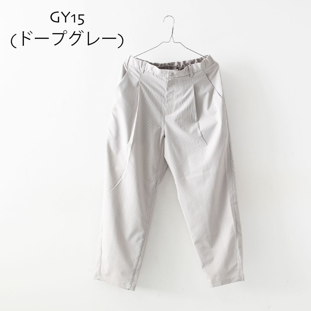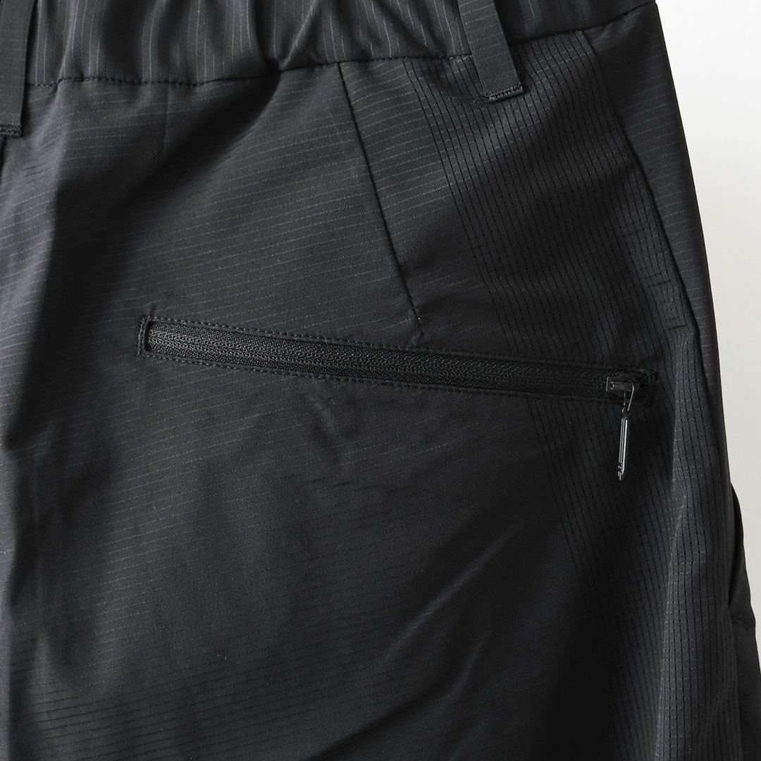 1枚の生地に特殊メッシュを部分的に配置し、効果的なベンチレーション性能を生み出すSCHEMATECH GRID AIRを使用した軽量ミドルシルエットパンツ。