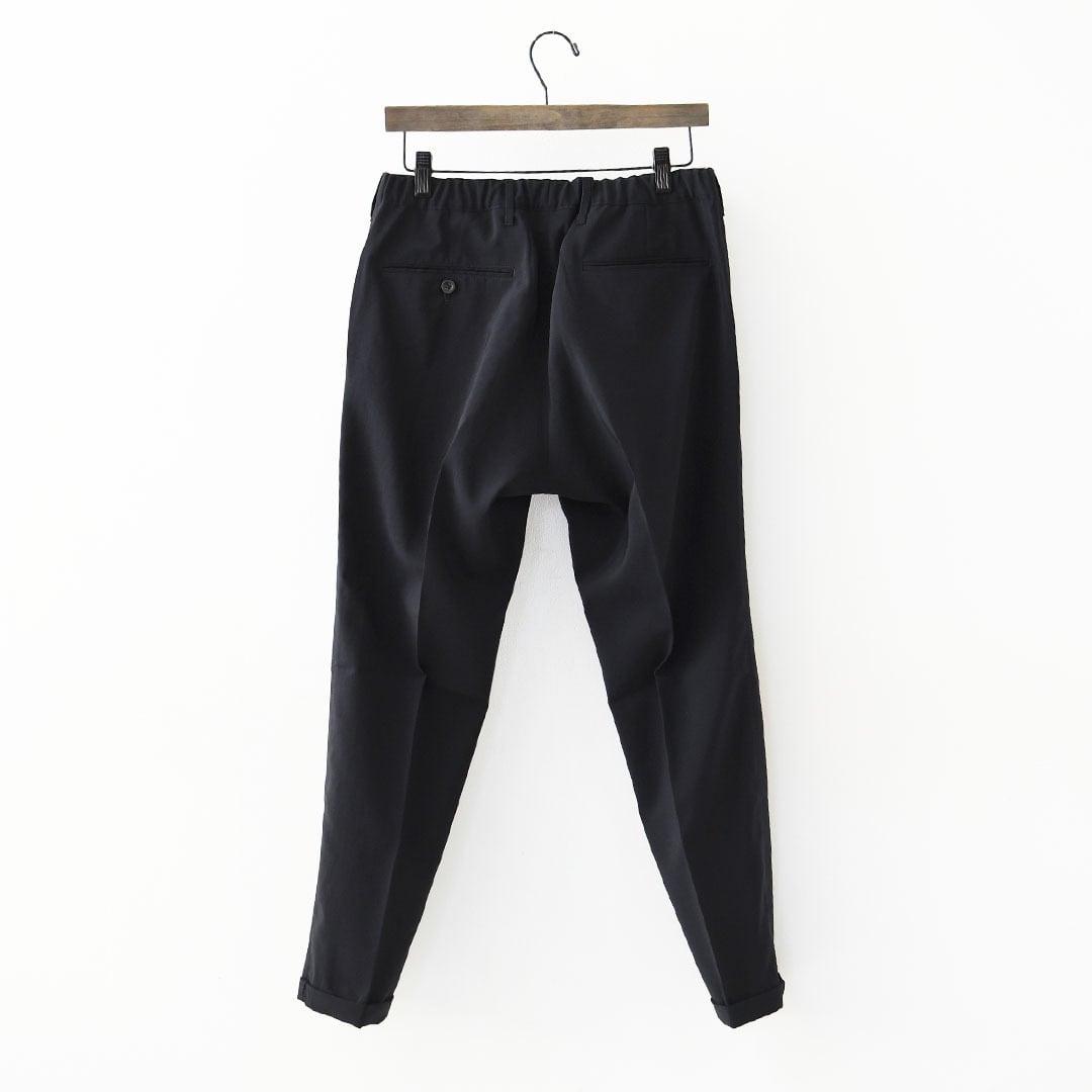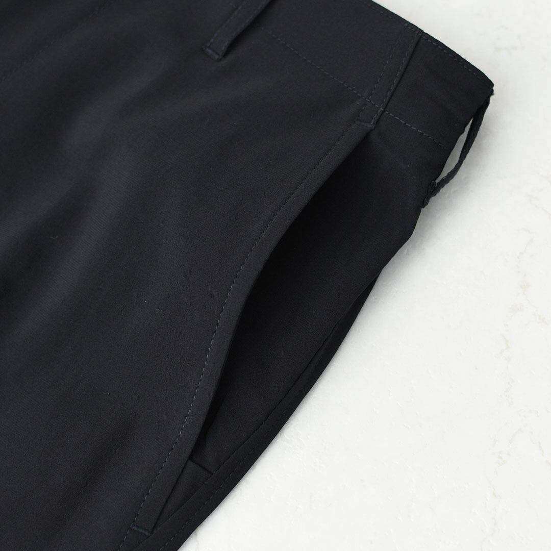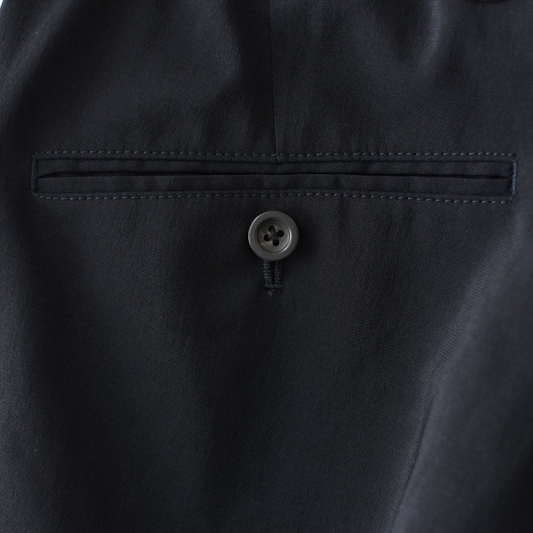 薄く軽い素材ながらオケージョンとしての利用も可能な風合いでマルチなセットアップのパンツです。