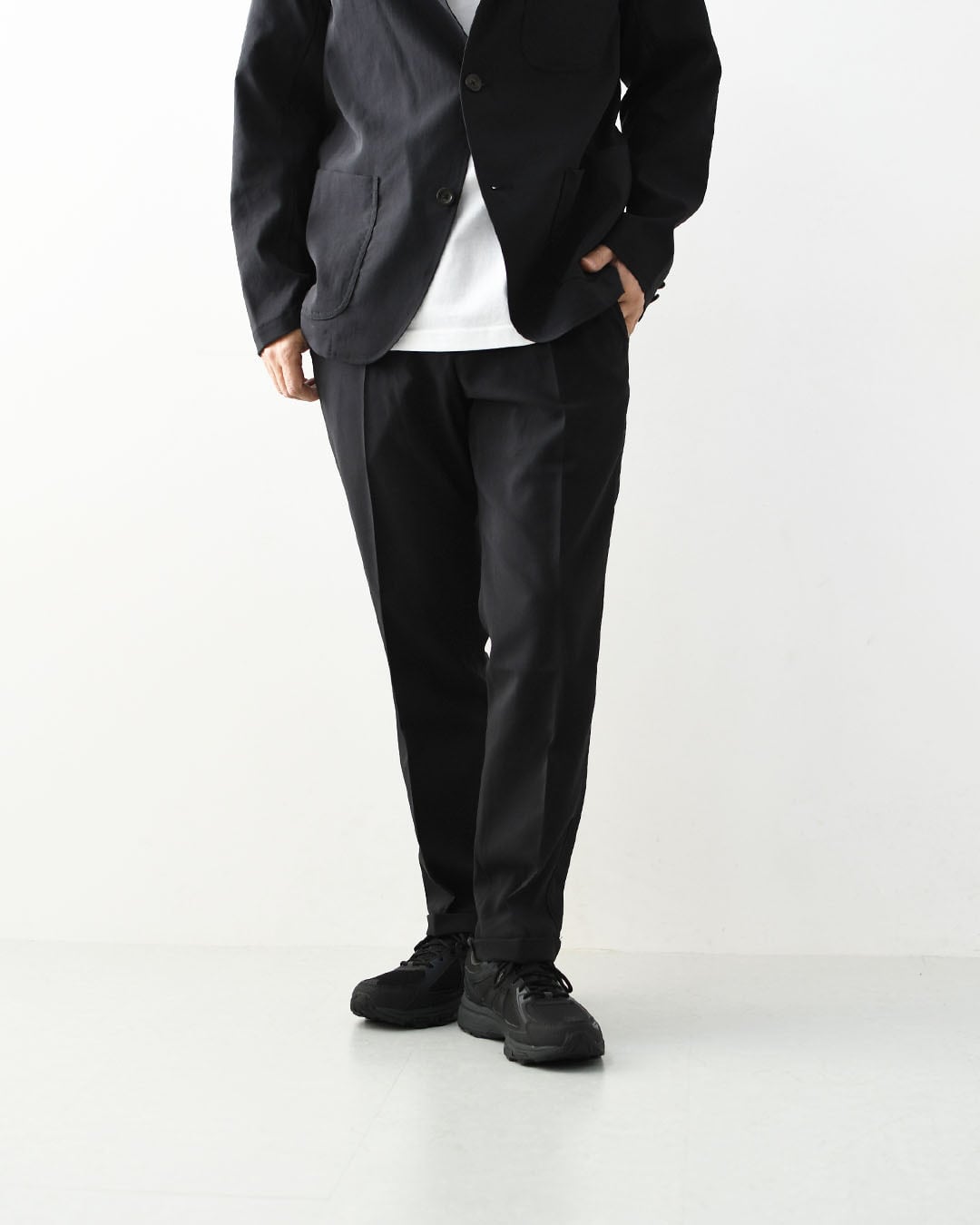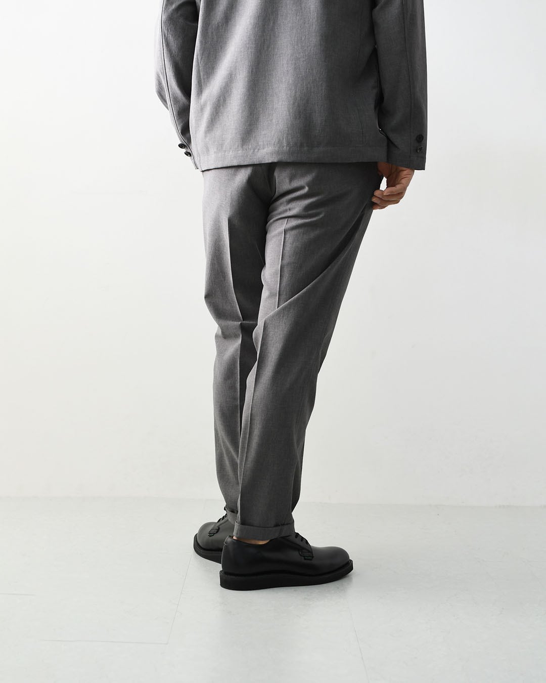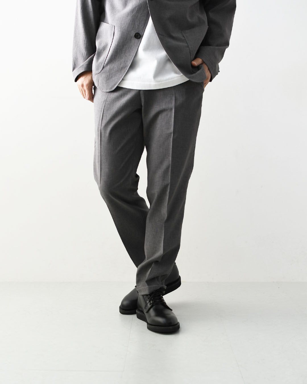 薄く軽い素材ながらオケージョンとしての利用も可能な風合いでマルチなセットアップのパンツです。