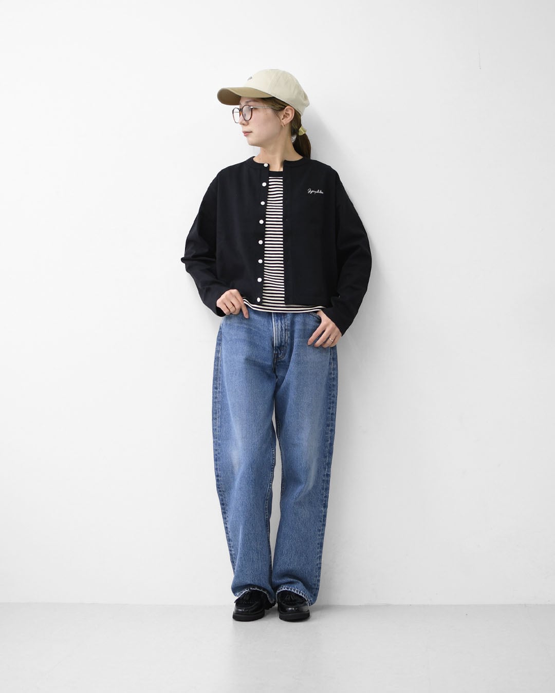 ボタンを留めてプルオーバーのように着るのもおすすめです。