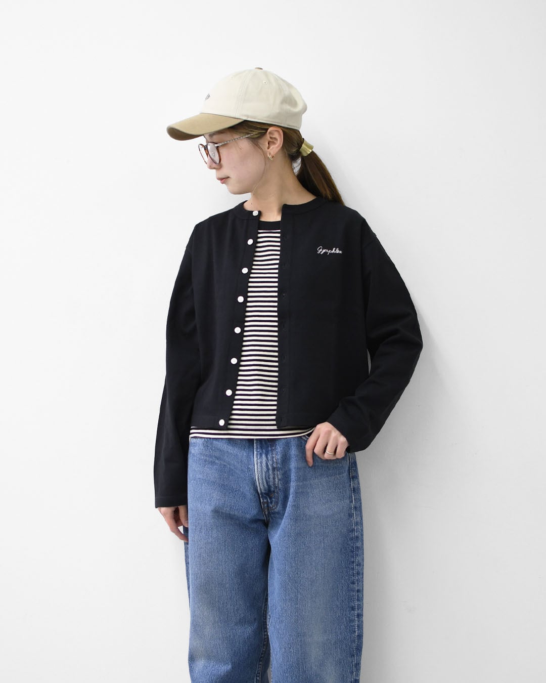 Gymphlex [ジムフレックス] W Cotton L/S Short Cardigan [GY-C0367SCT] コットン 長袖ショートカーディガン・カーディガン・クルーネック・コットン・無地・ロゴ・シンプル・LADY'S [2026SS]