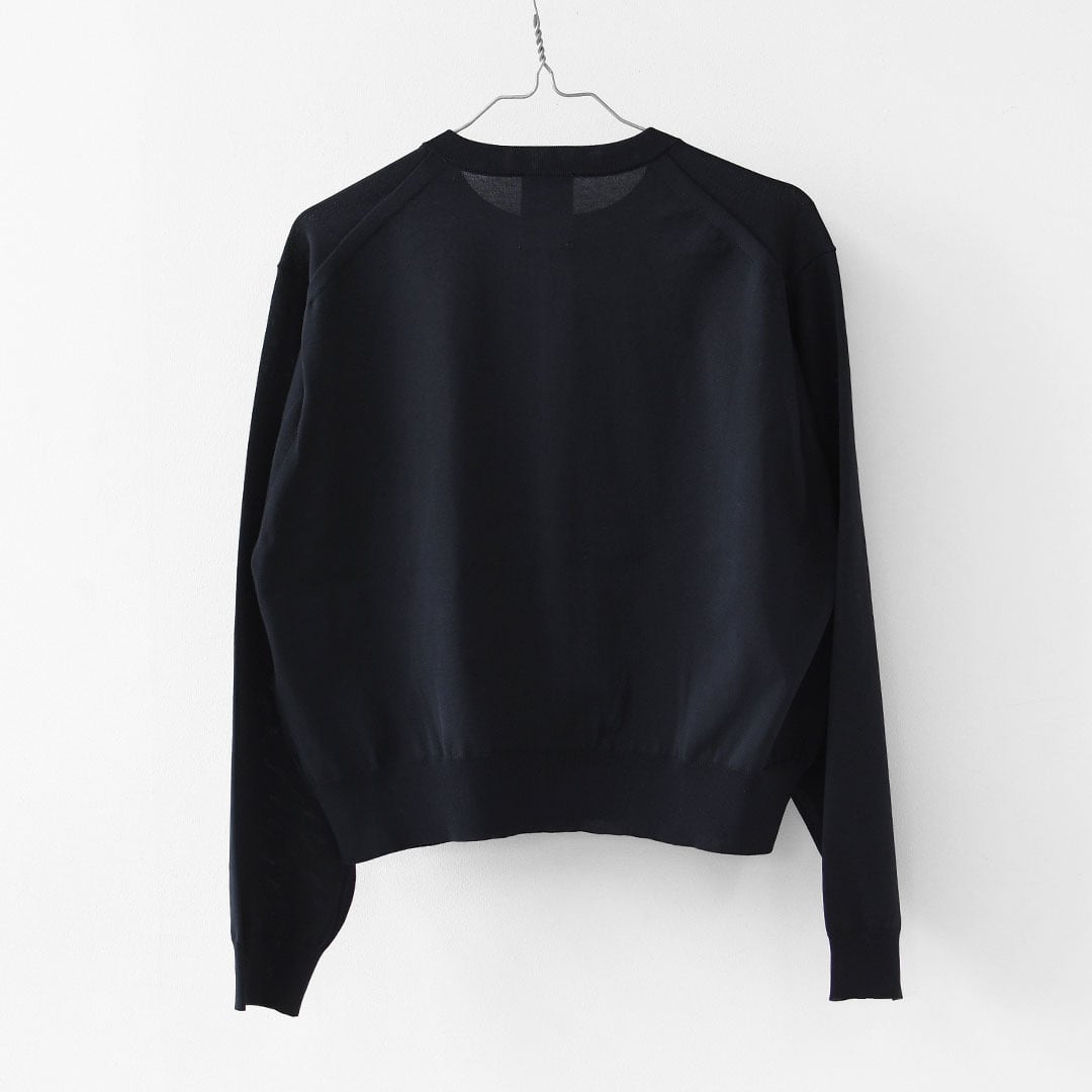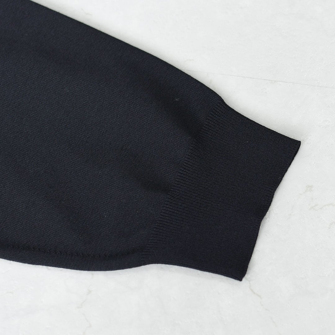 細番手の糸を丁寧に編み立てたハイゲージニットは、薄手でありながら透けにくく、上品でなめらかな表情。
