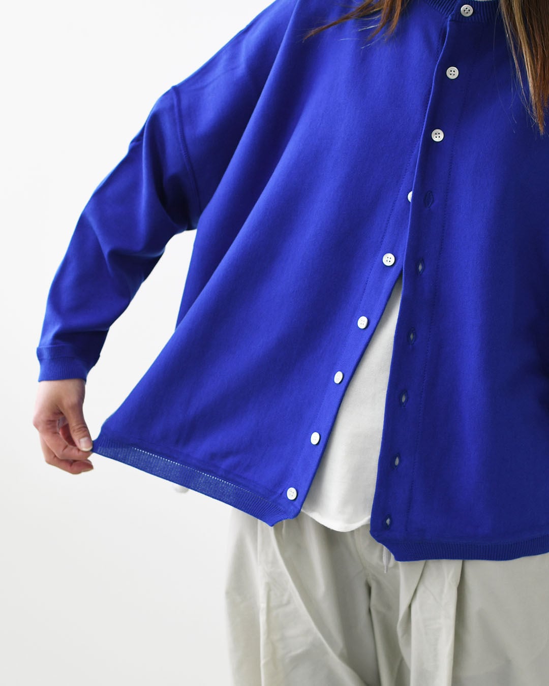大人の日常にちょうどいい、バランスの取れたカーディガンです。
