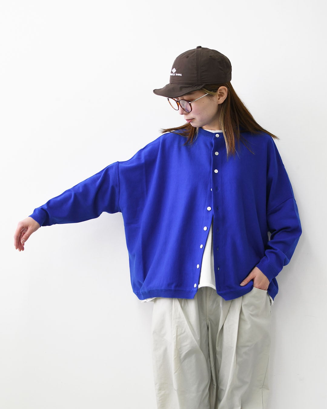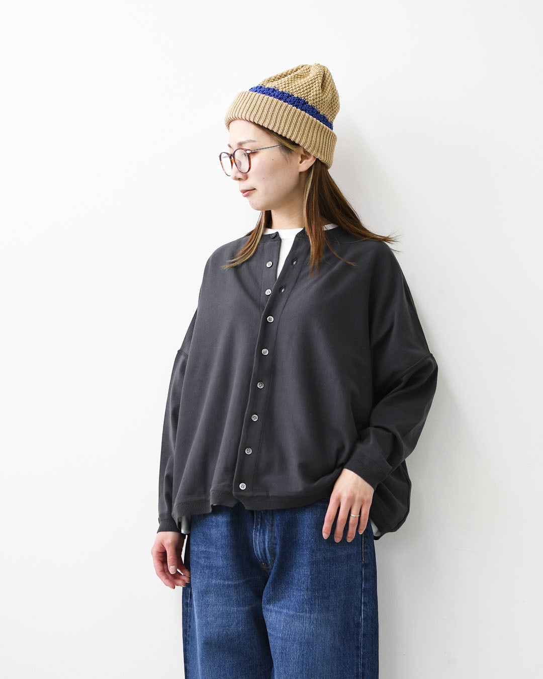 「何を羽織るか迷ったらこれ。」そう思える安心感が、このカーディガンの一番の魅力かもしれません。