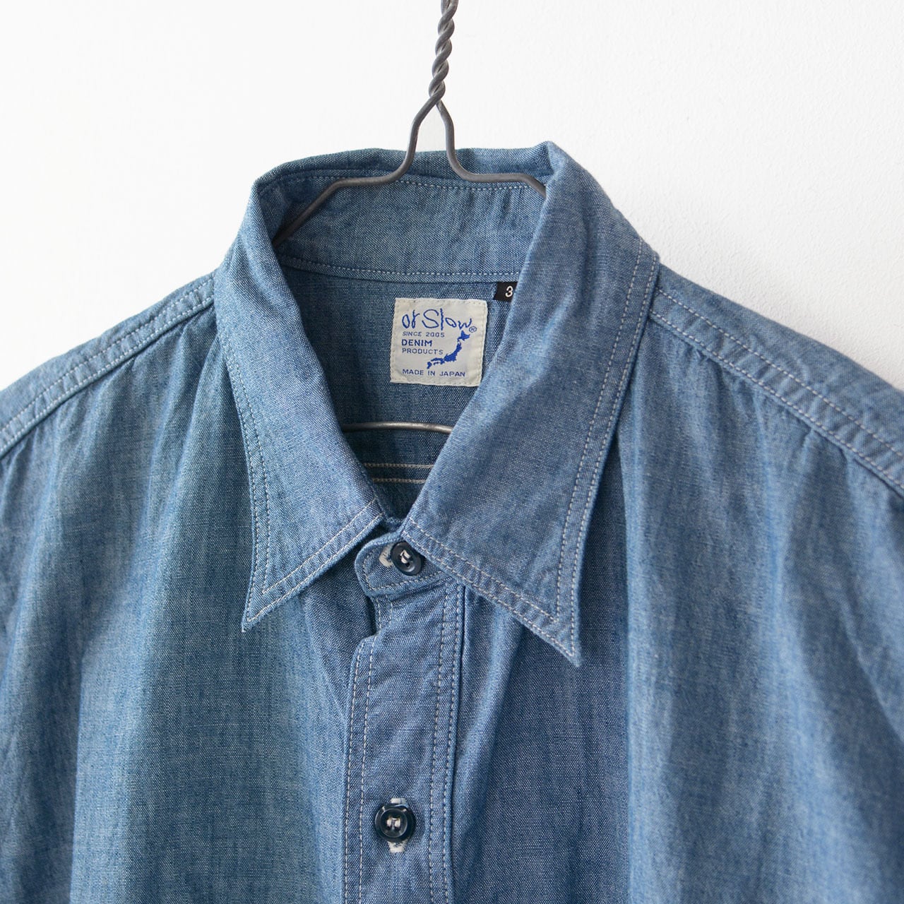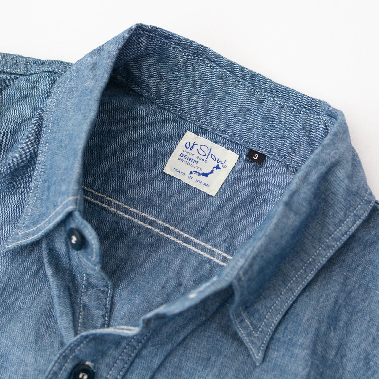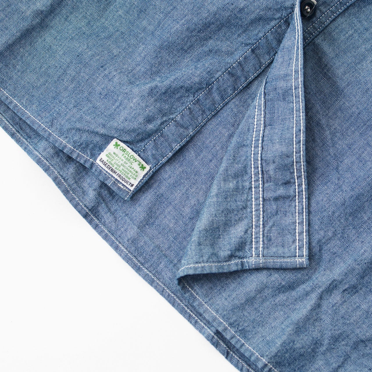 orslowオリジナルの4.5ozのシャンブレーを使用したシャツ。